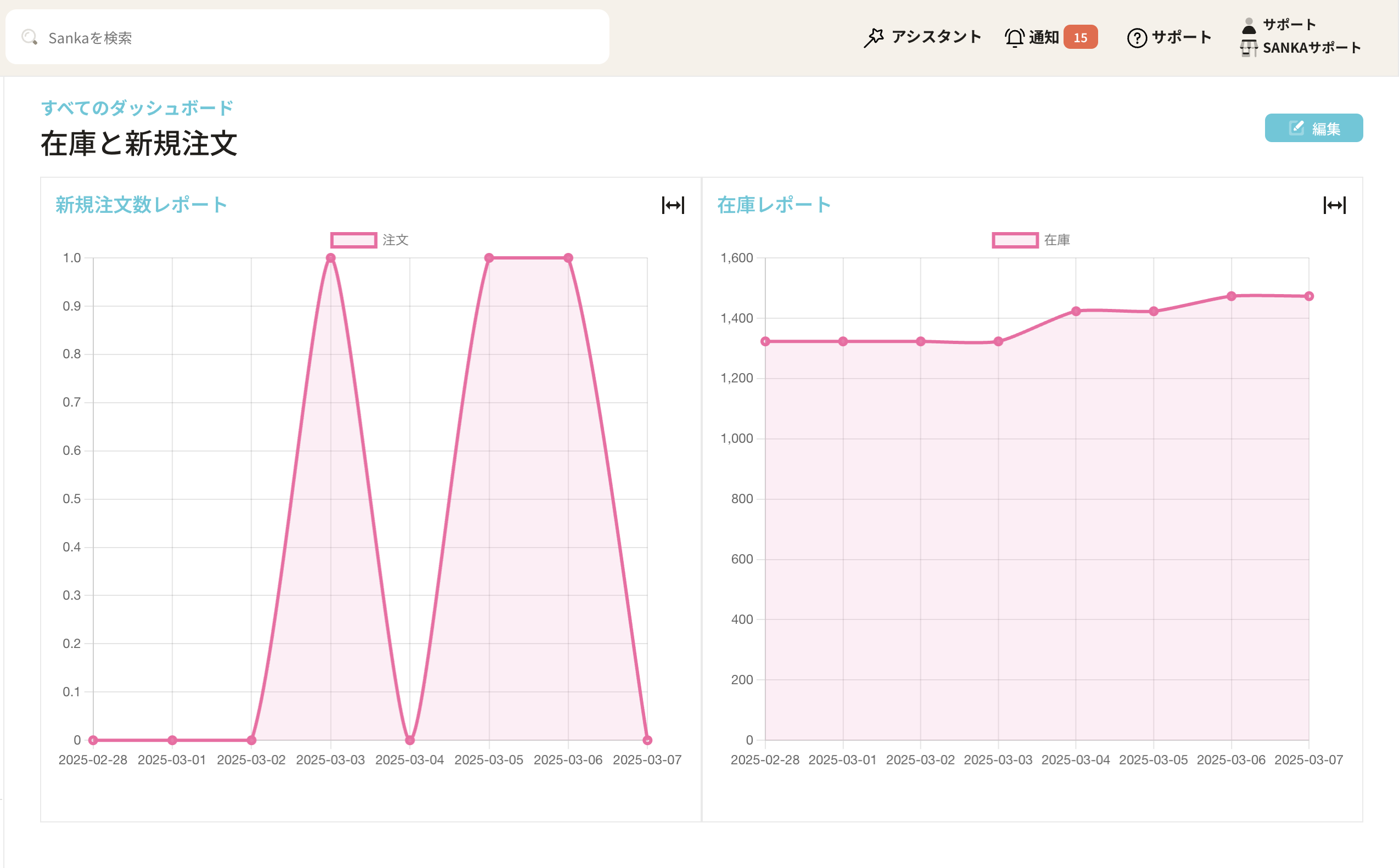 It is also possible to create a dashboard by combining the reports created with Reports and display it on the Sanka home screen.