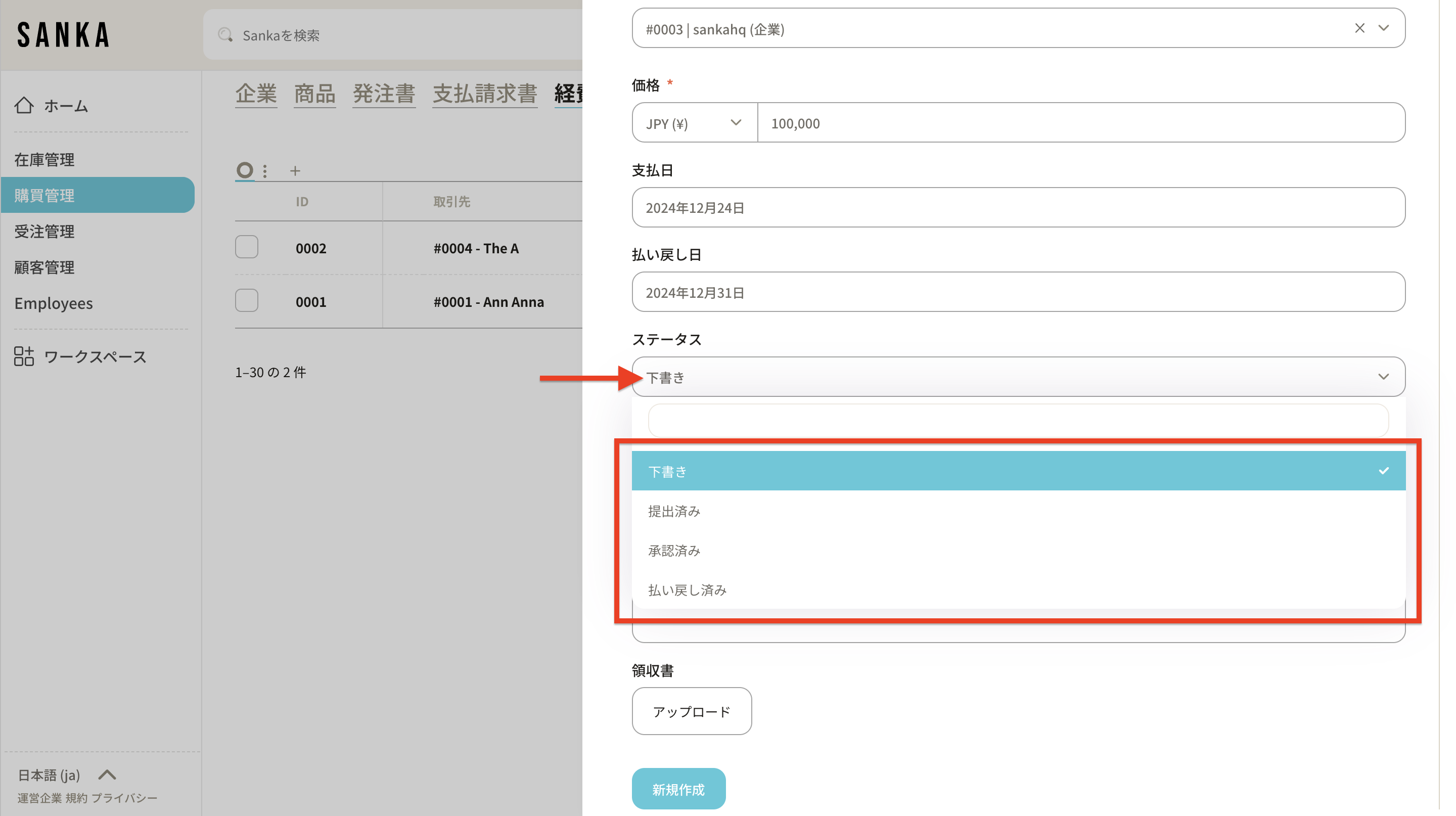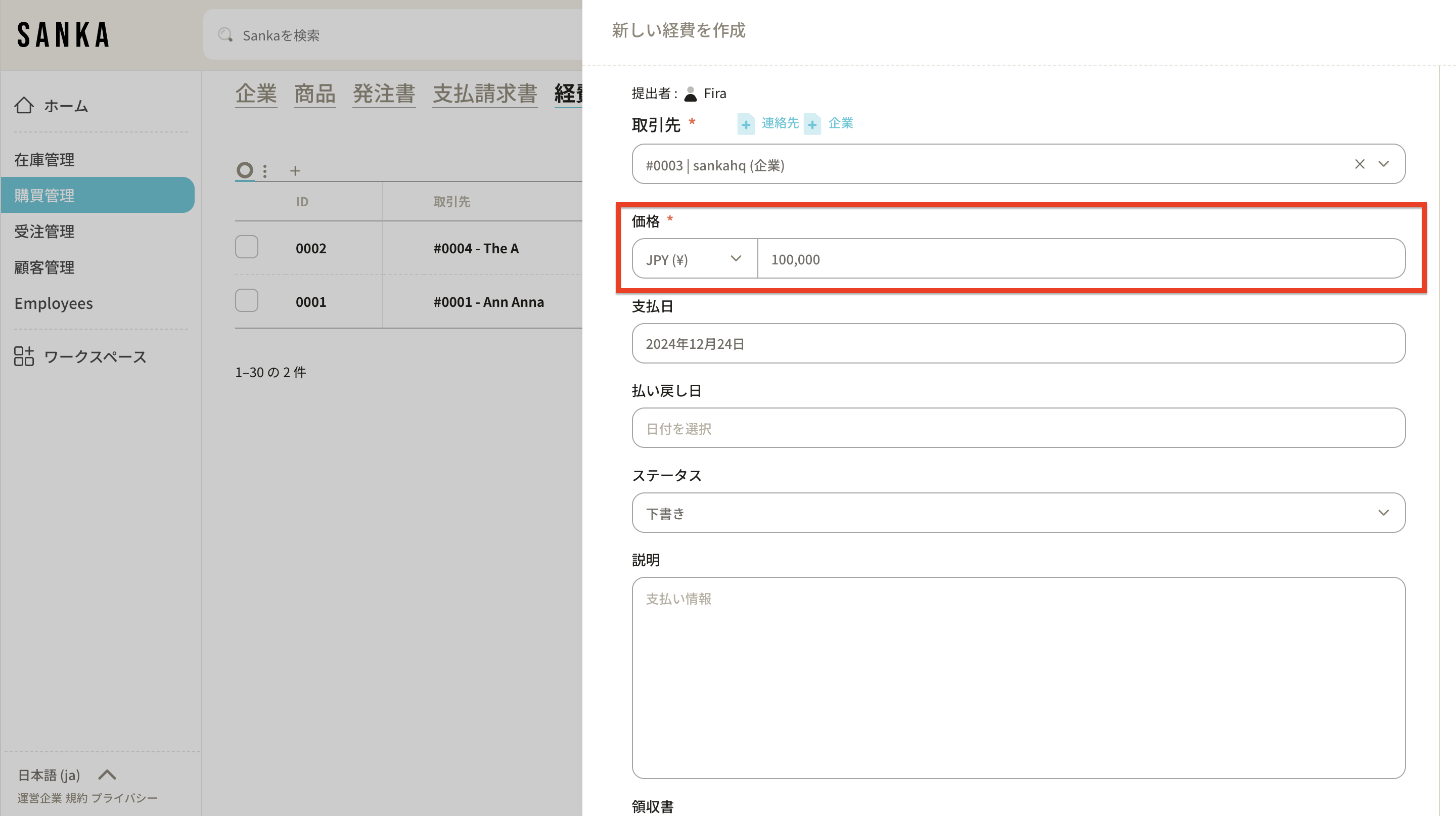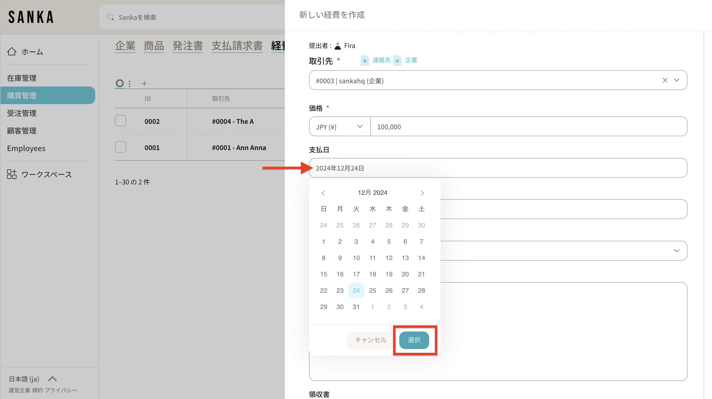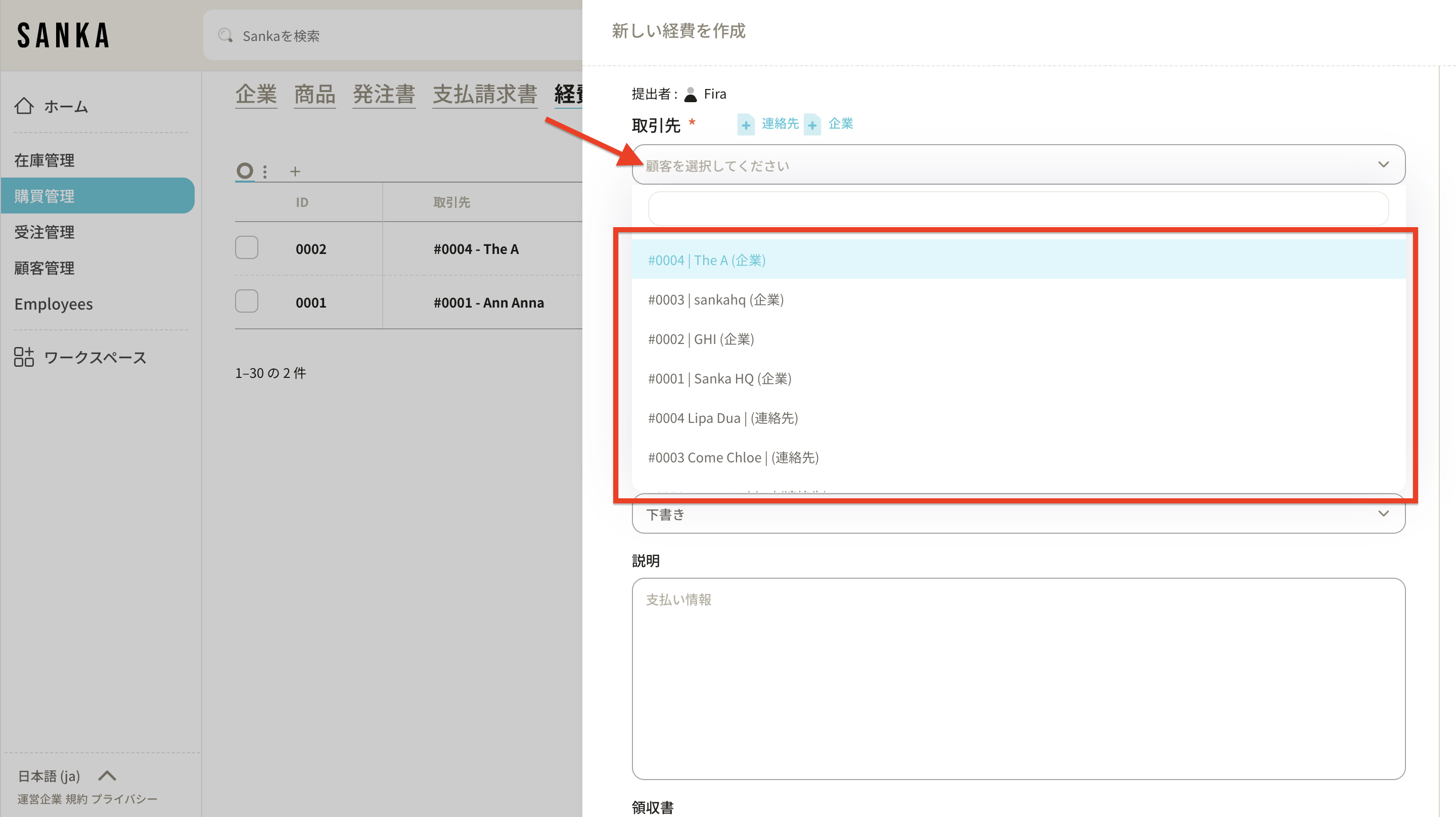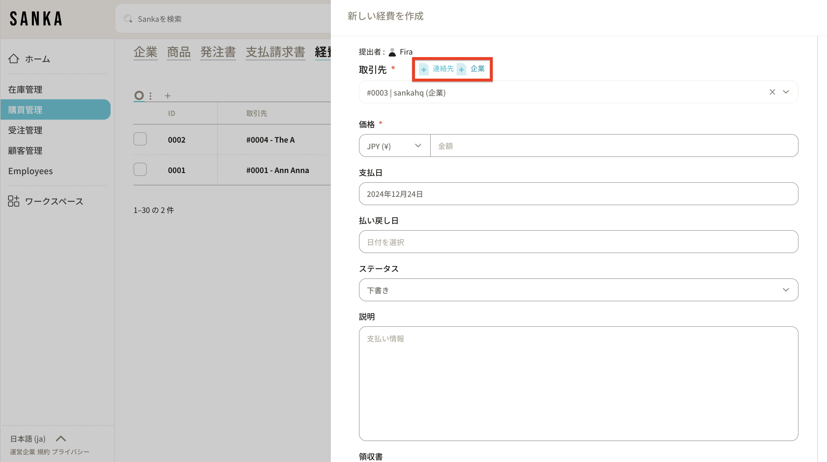 2: The details page will be displayed. Enter the required information. First, select a partner from your registered contacts and companies.