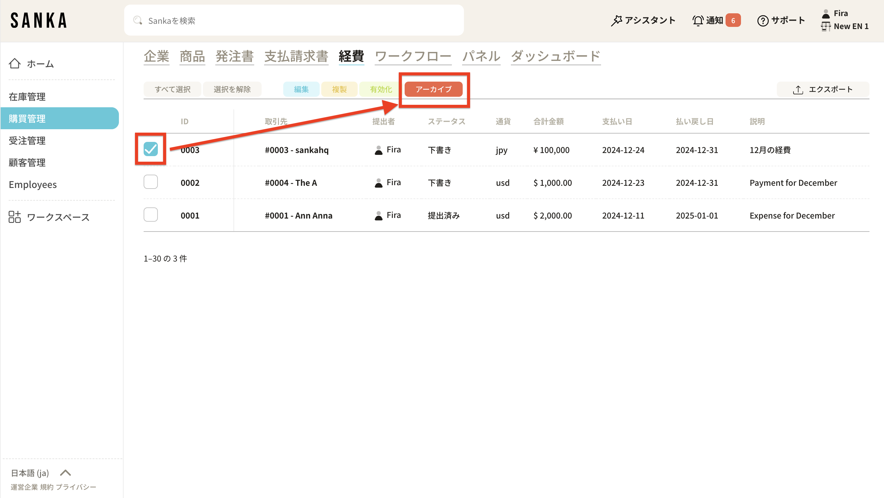 14: If you want to reinstate it, click the box for the appropriate expense and select Activate.