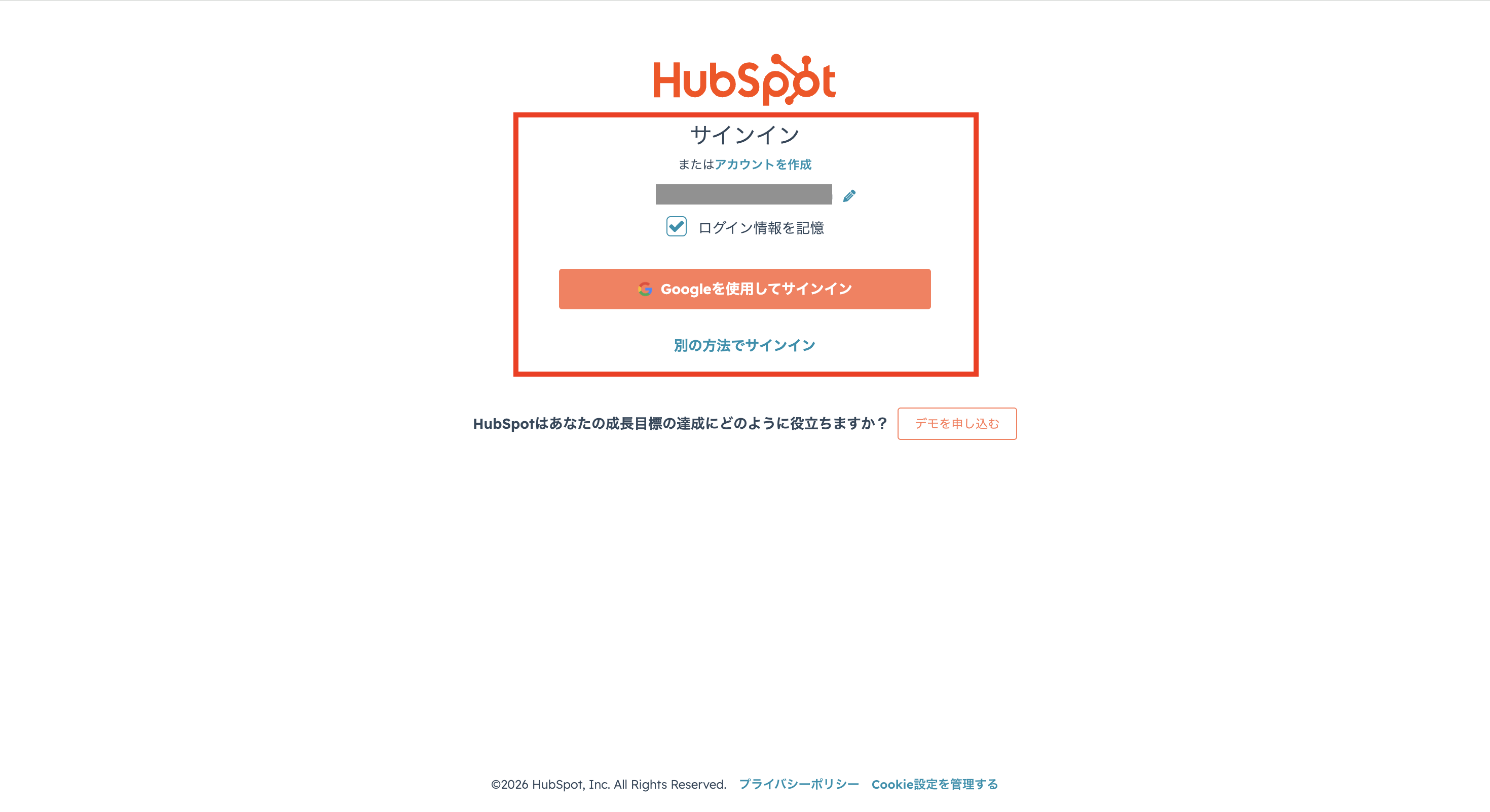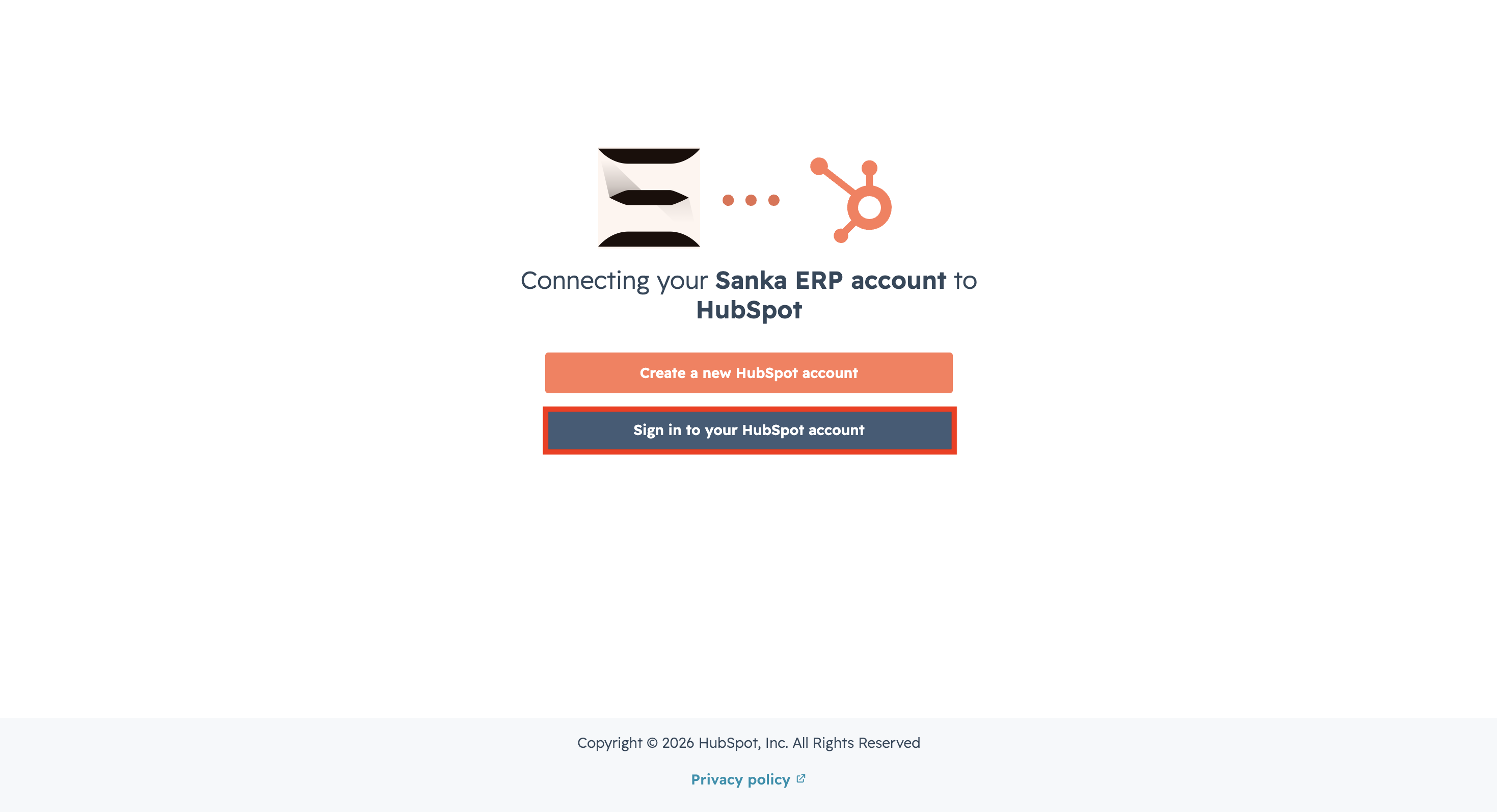 ④ You will be taken to the HubSpot login screen. Select Sign in to your HubSpot account.
