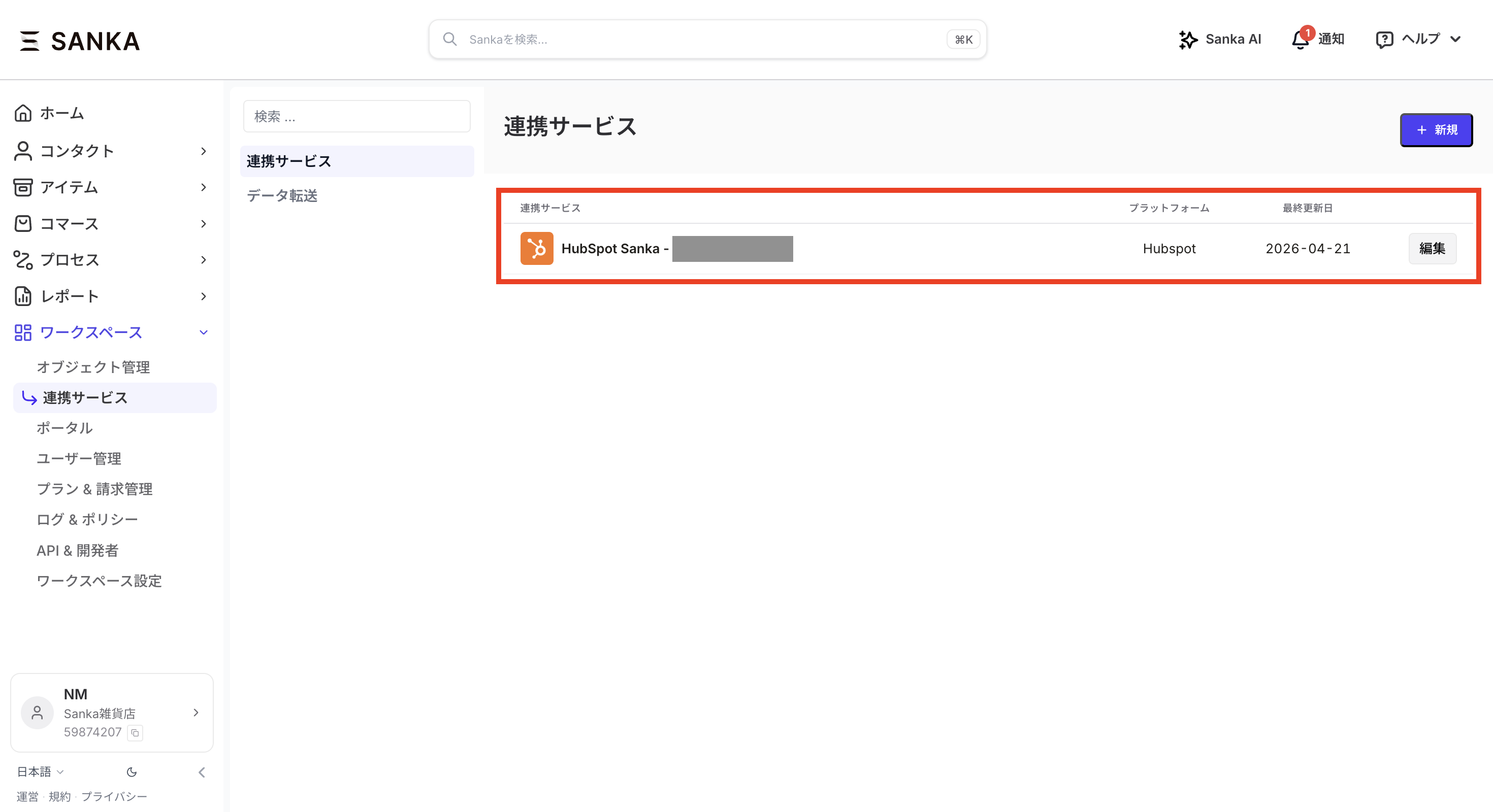 ⑦ You will be redirected back to the Sanka integrations page. Once HubSpot appears in the integrations list, the connection is complete.