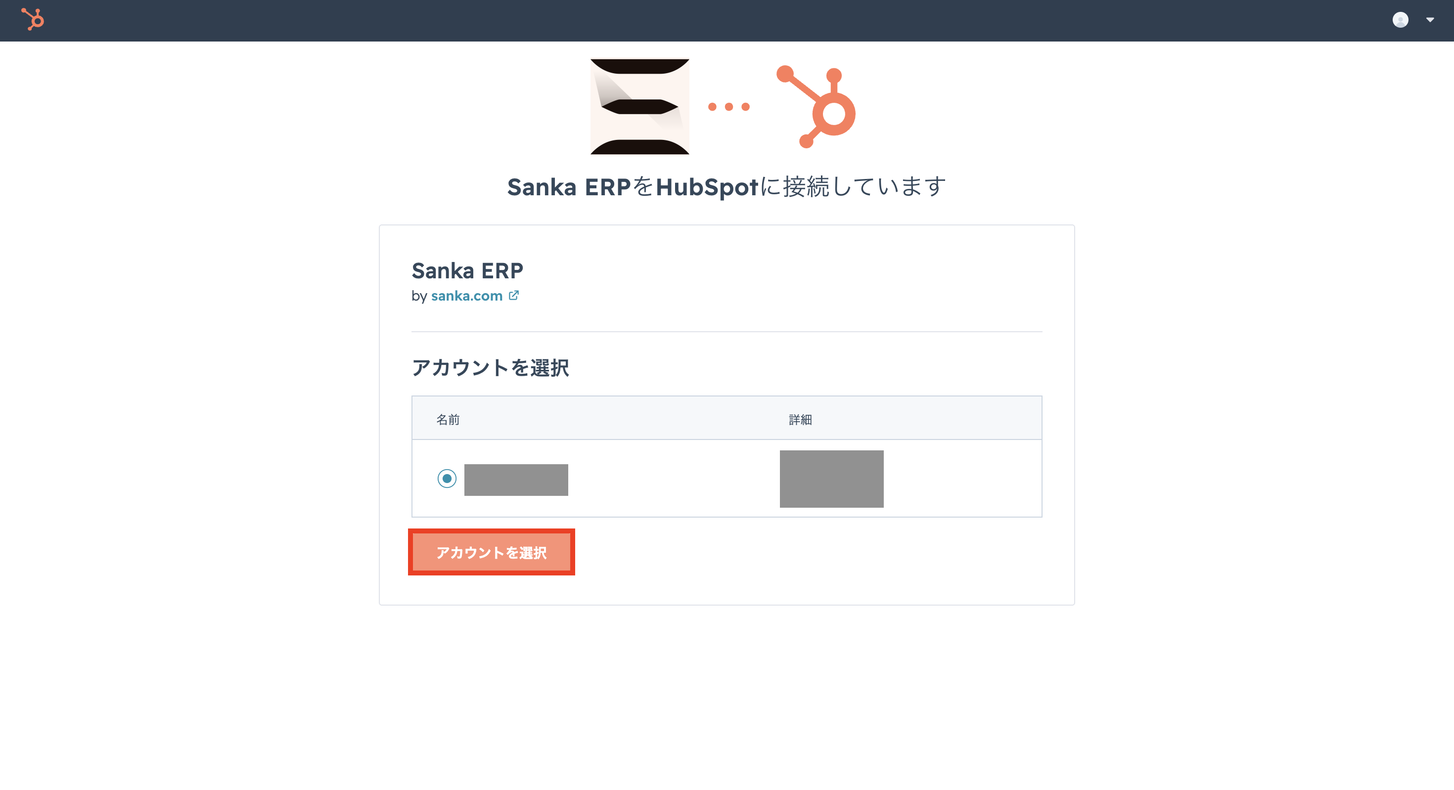 ⑥ Select your HubSpot account. If you have multiple accounts, pick the one you want to connect.
