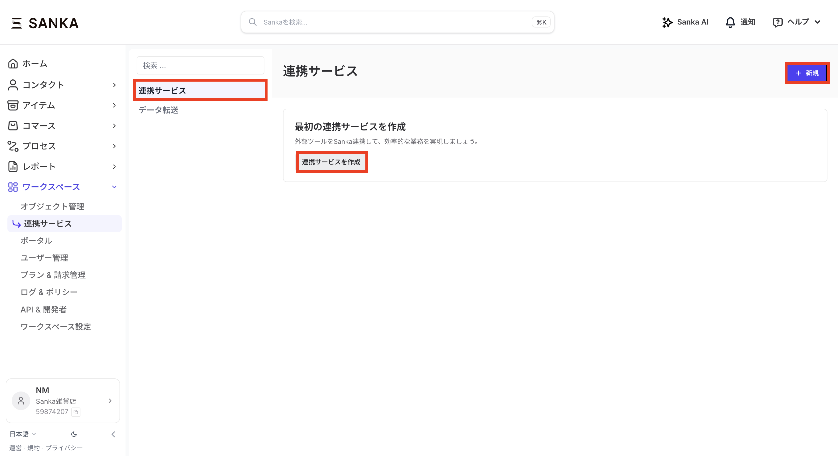 ② Start the integration setup from Create integration or the :heavy_plus_sign: New button.