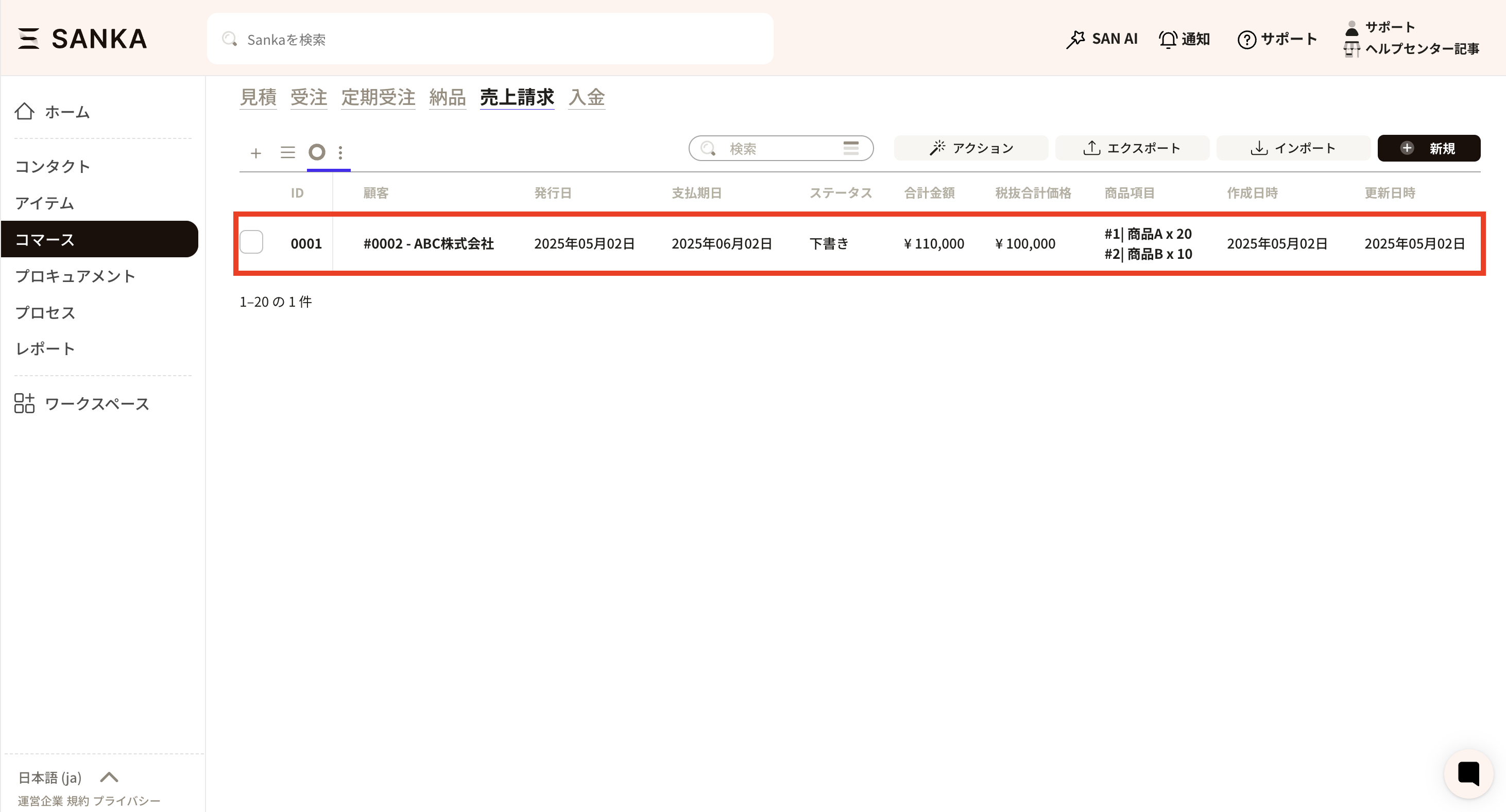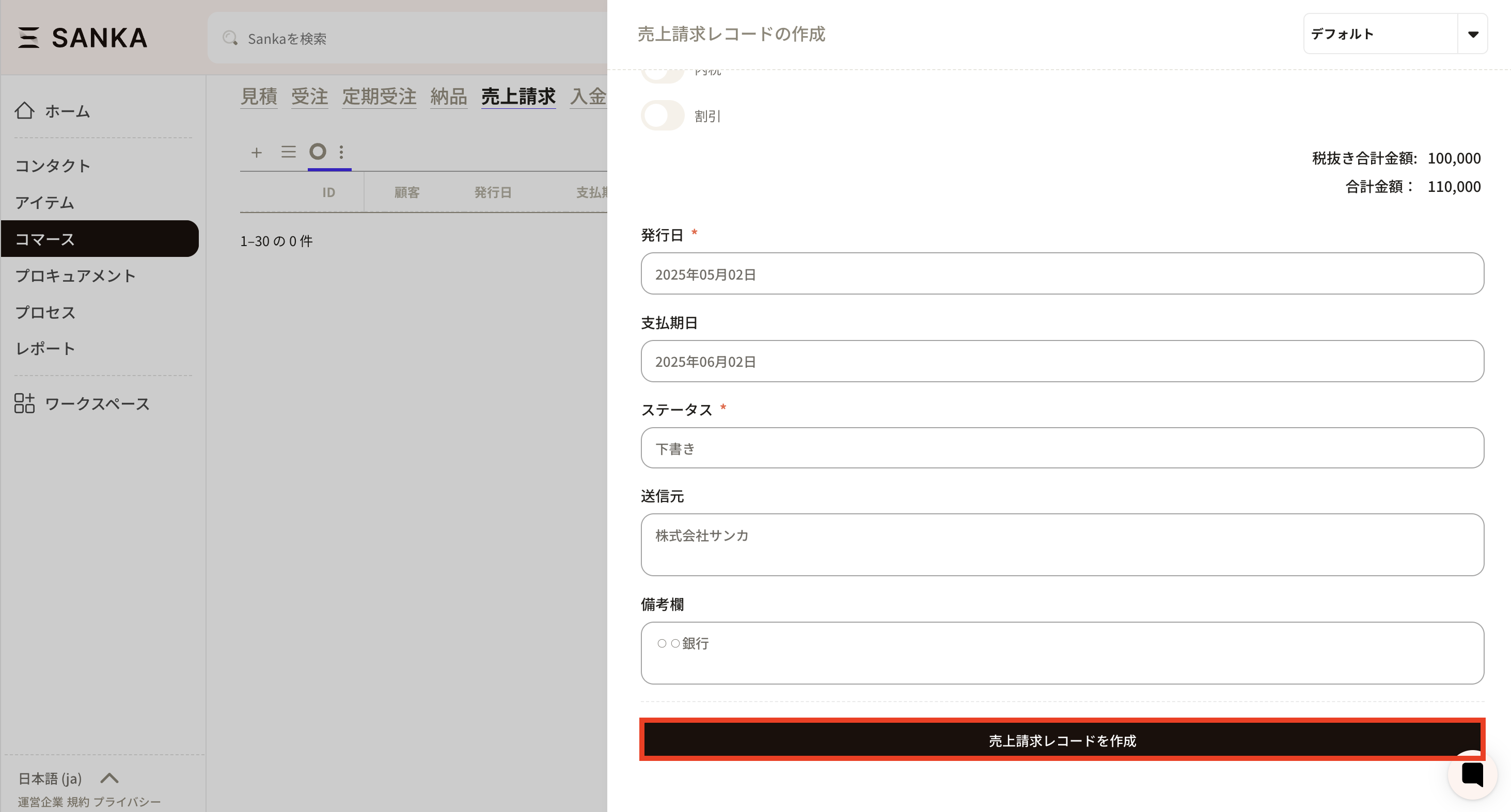 ②The "Create invoice" menu will be displayed, so enter the necessary information.
