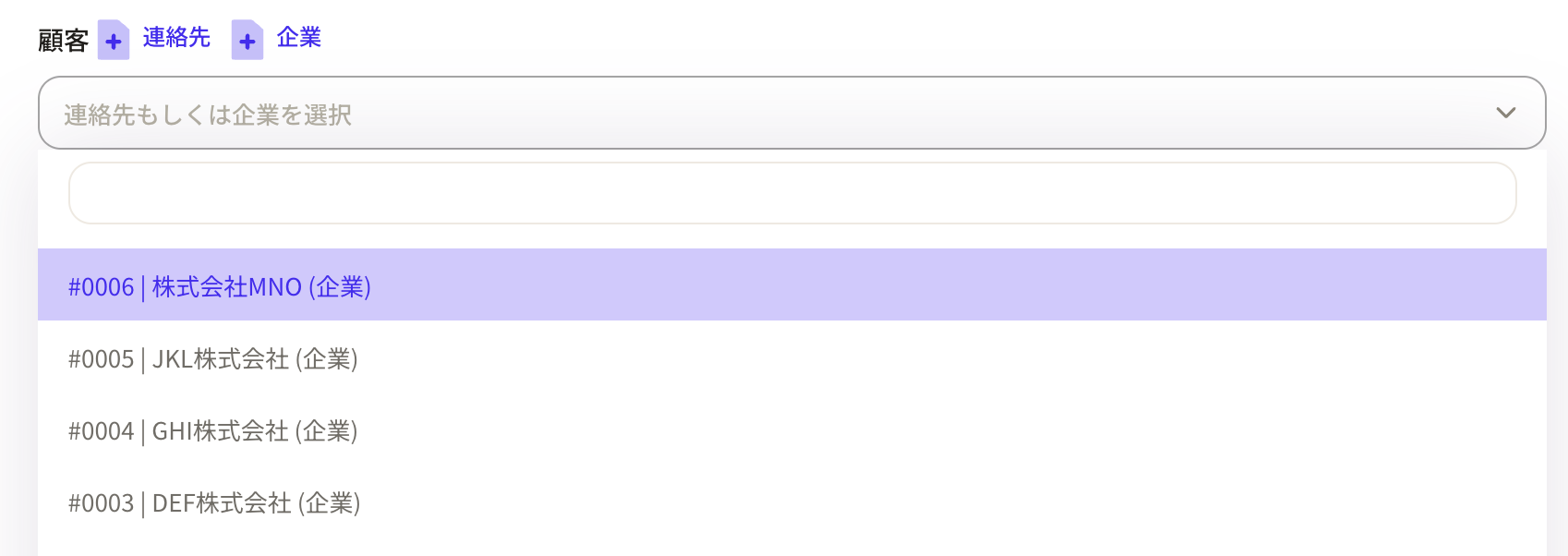 *If you do not have business partner information, you can add it directly from the "+Contact" and "+Company" buttons.