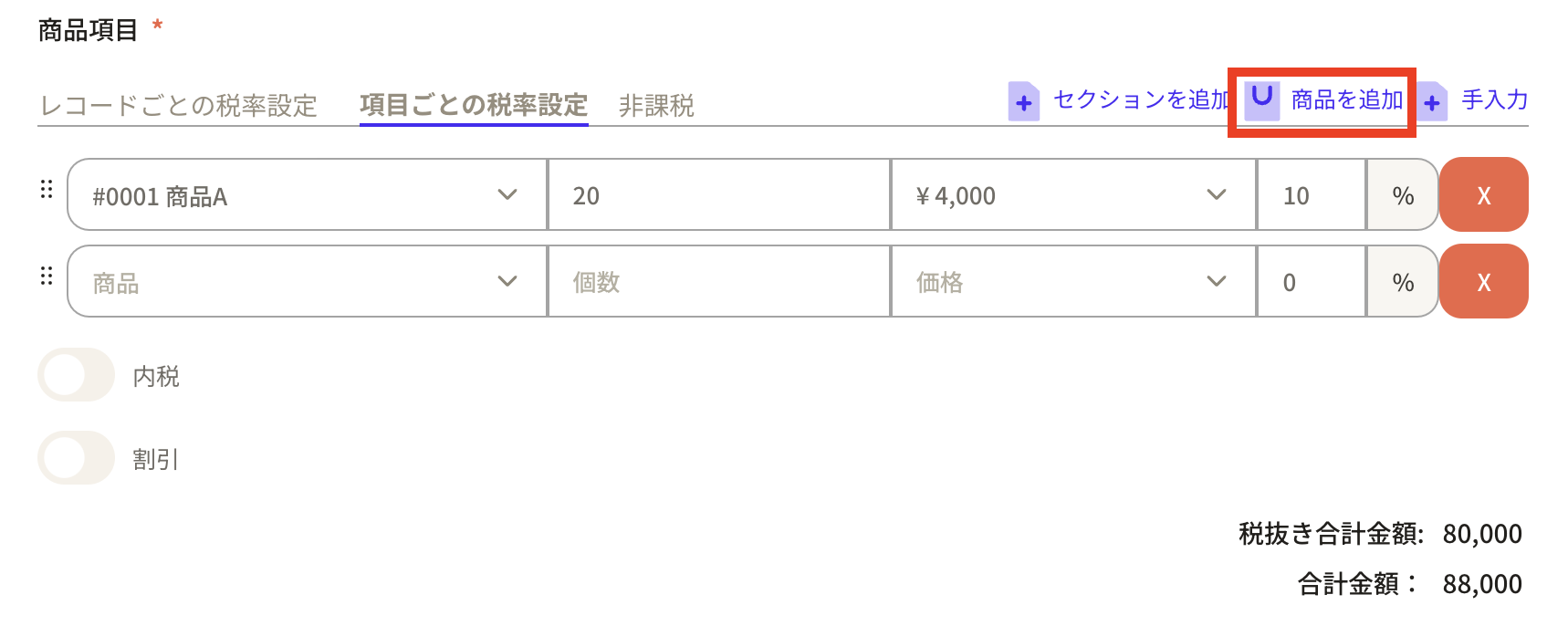 Please note that the amount at the time of product record registration will be automatically added to the unit price.