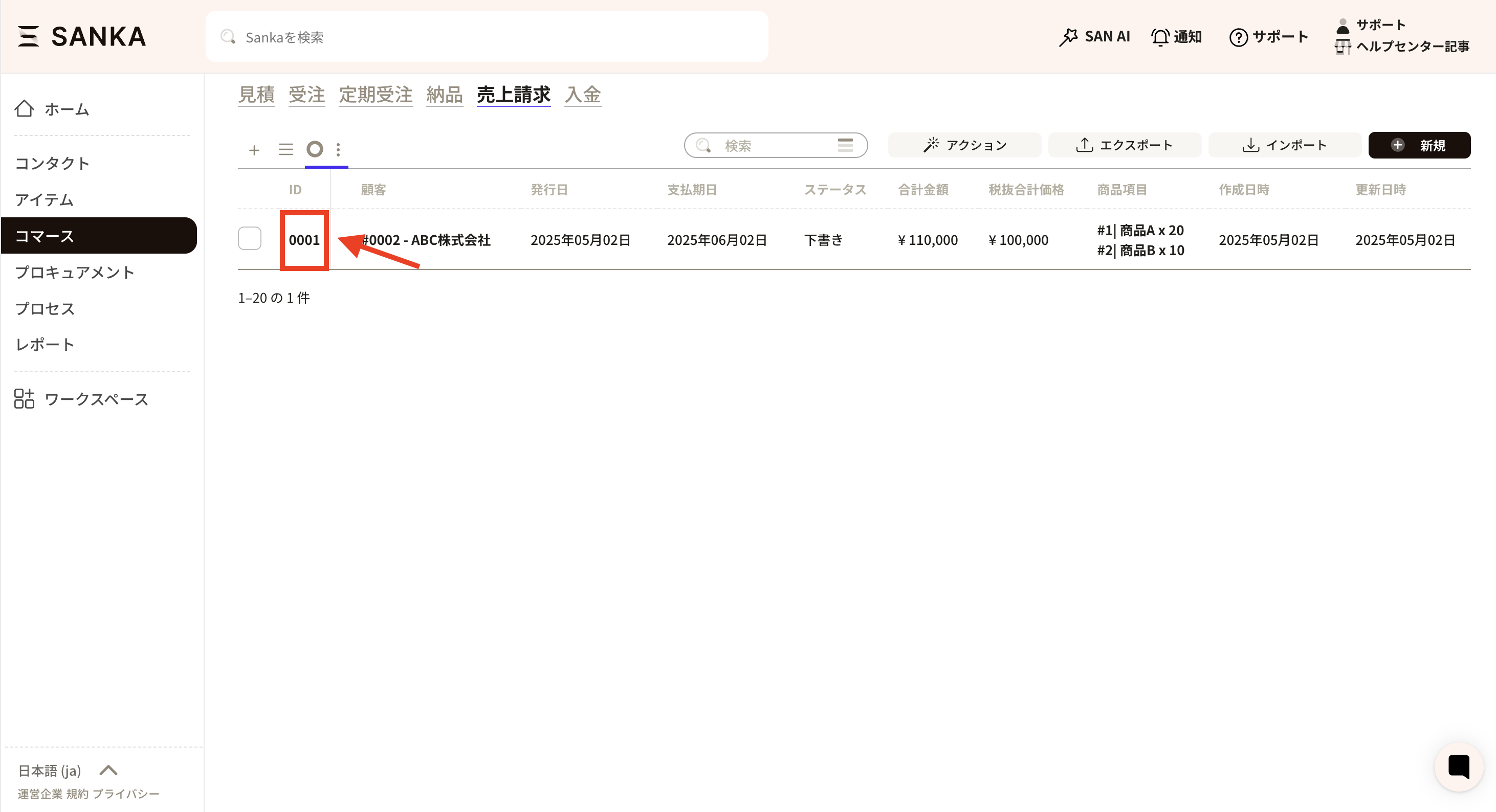 ②Click on "ID" and the "Manage sales billing records" screen will be displayed, so please correct the information.