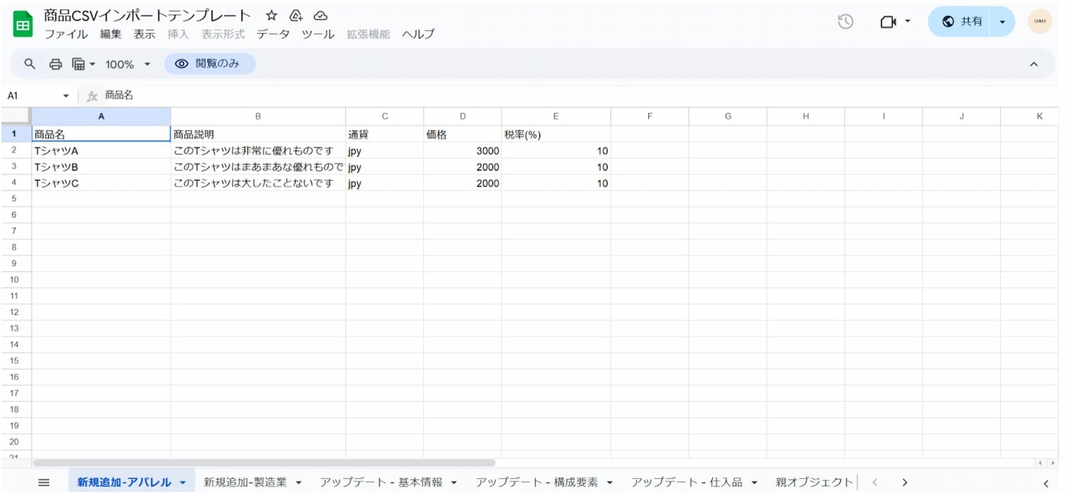 **② Download “Product CSV import template”. **