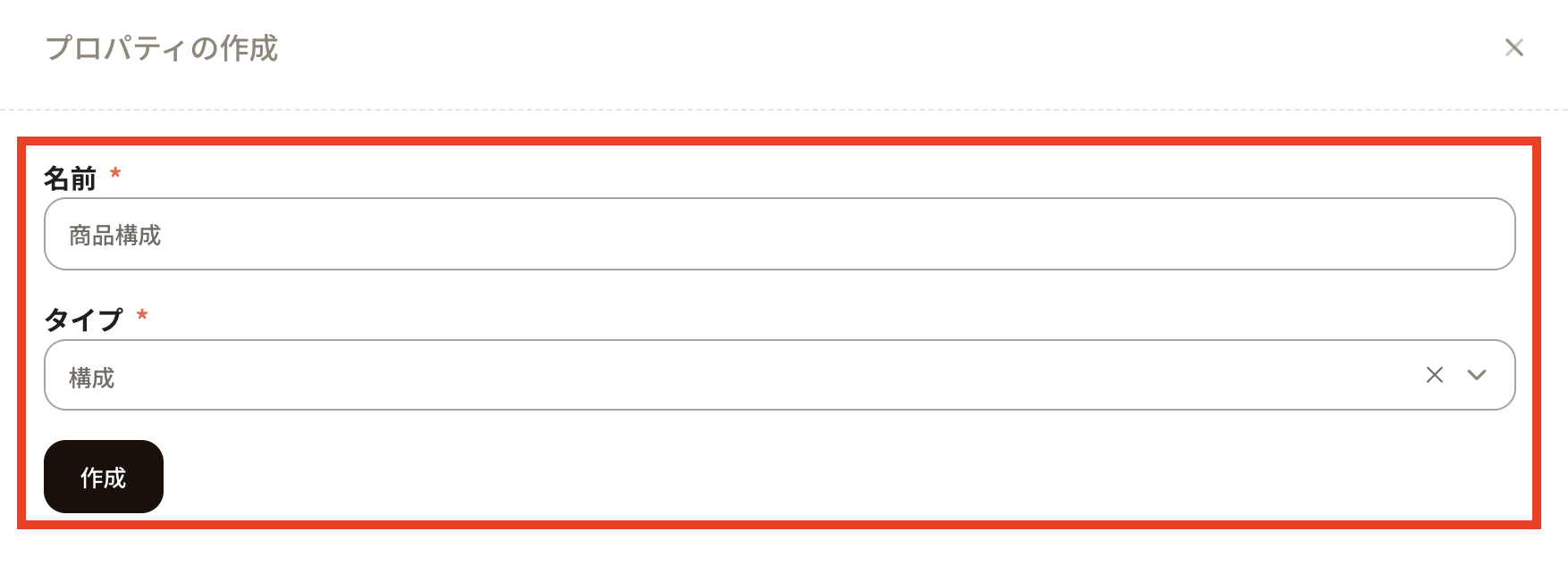 ④The "Create property" menu will appear, so enter the necessary information.