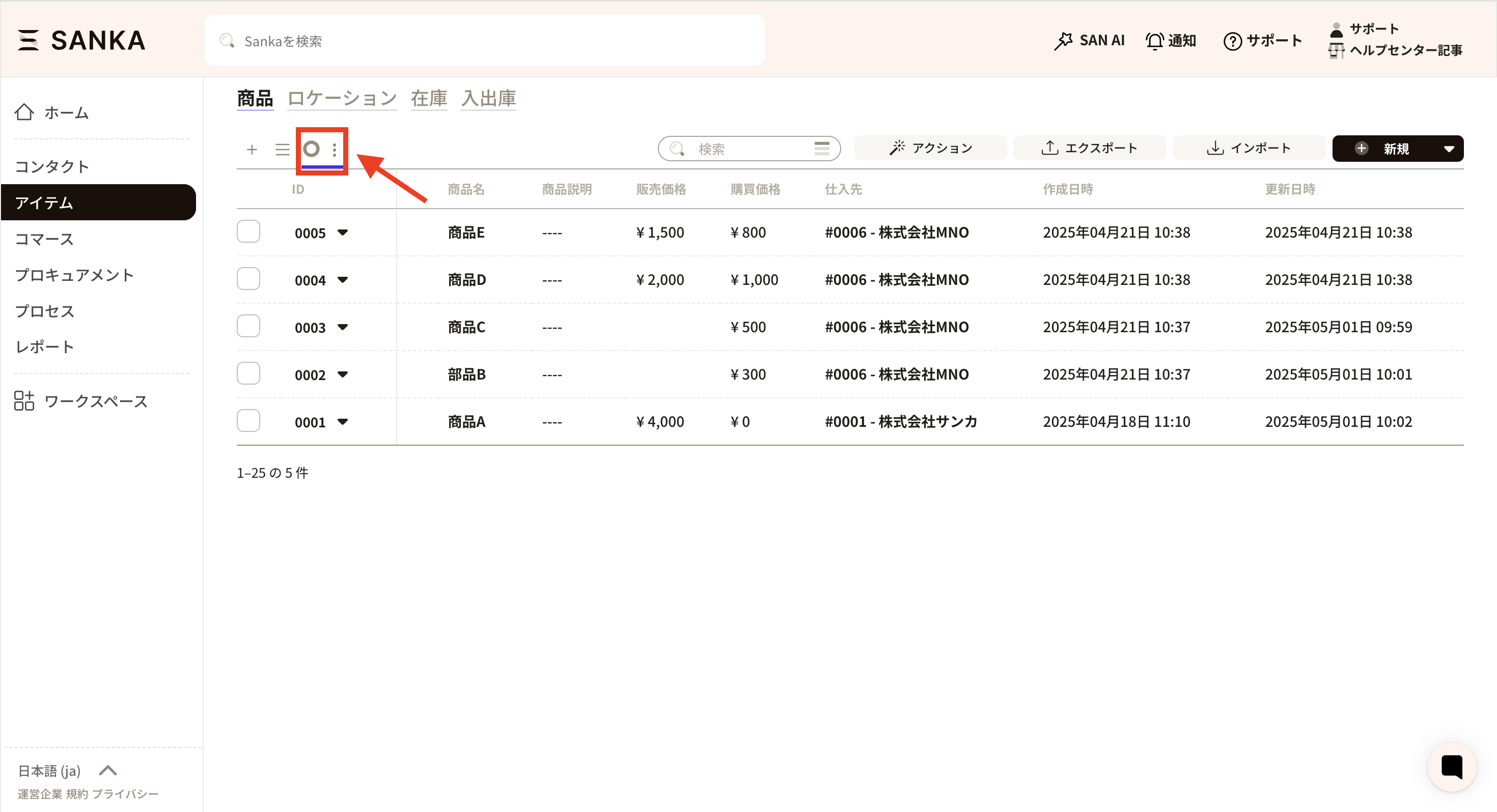 ⑬ Set the form you created here to always be displayed. First, press the view settings (three vertical dots button) at the top left of the record list.