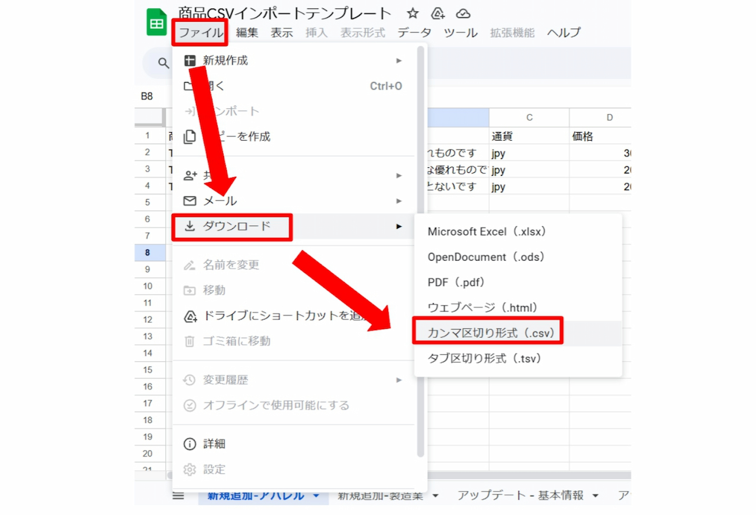 **Select "File" → select "Download" → select "Comma delimited format (.csv)" and download to your desired location. **