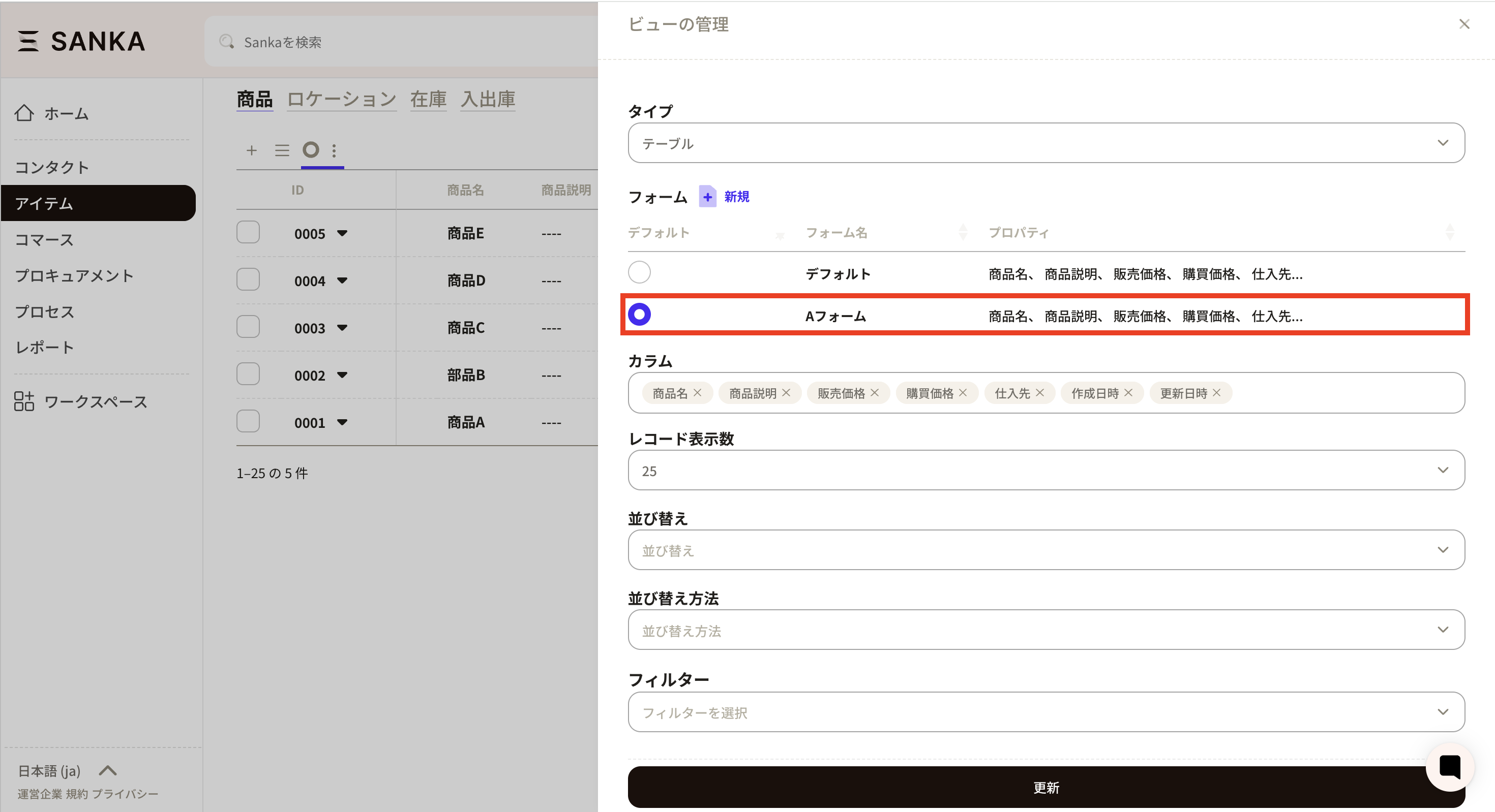 ⑯Finally, press the update button, and the form with the product configuration added will always be displayed.