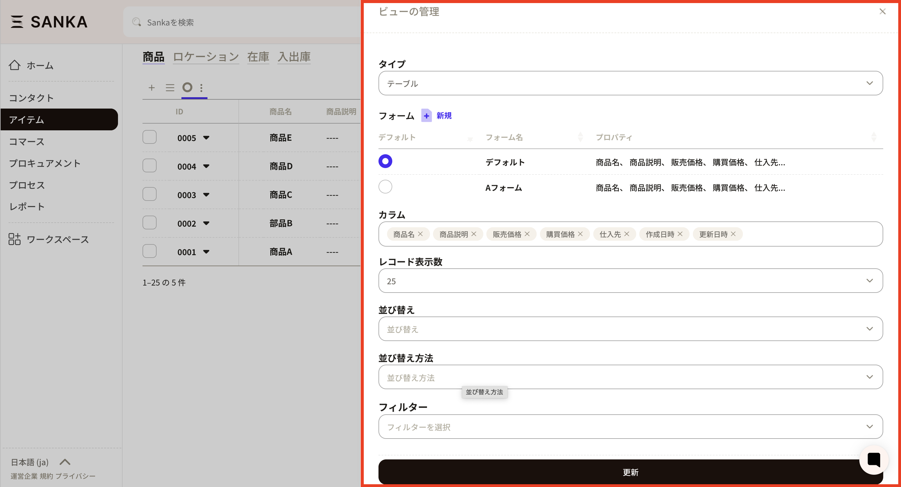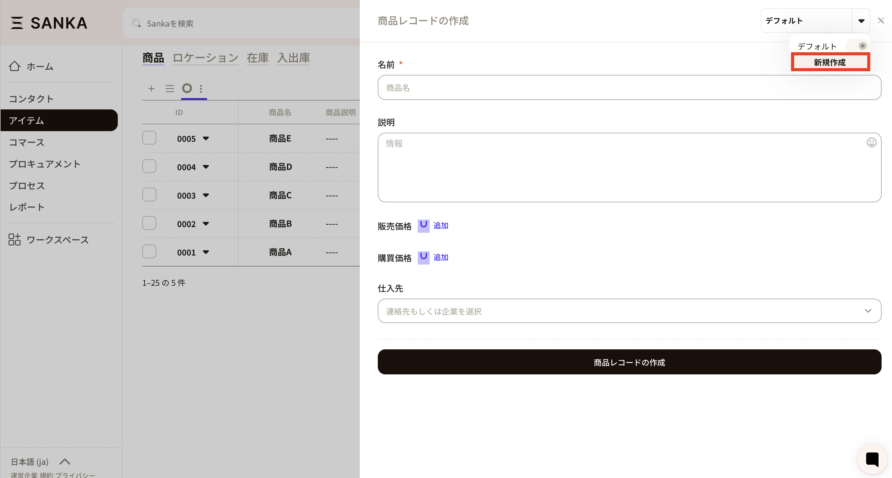⑥Next, reflect the created product configuration properties on the form (record creation screen). Open "New" for the product object.
