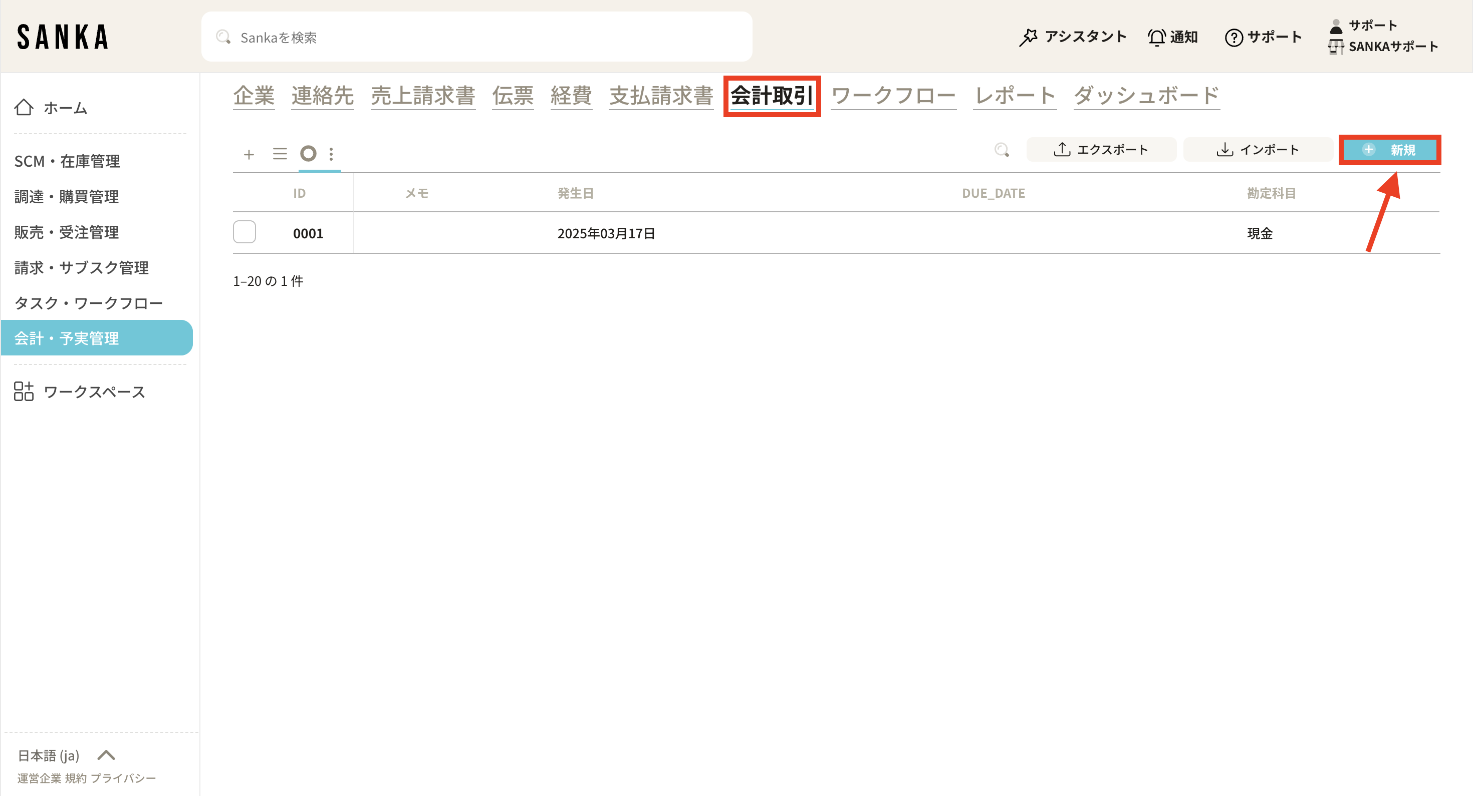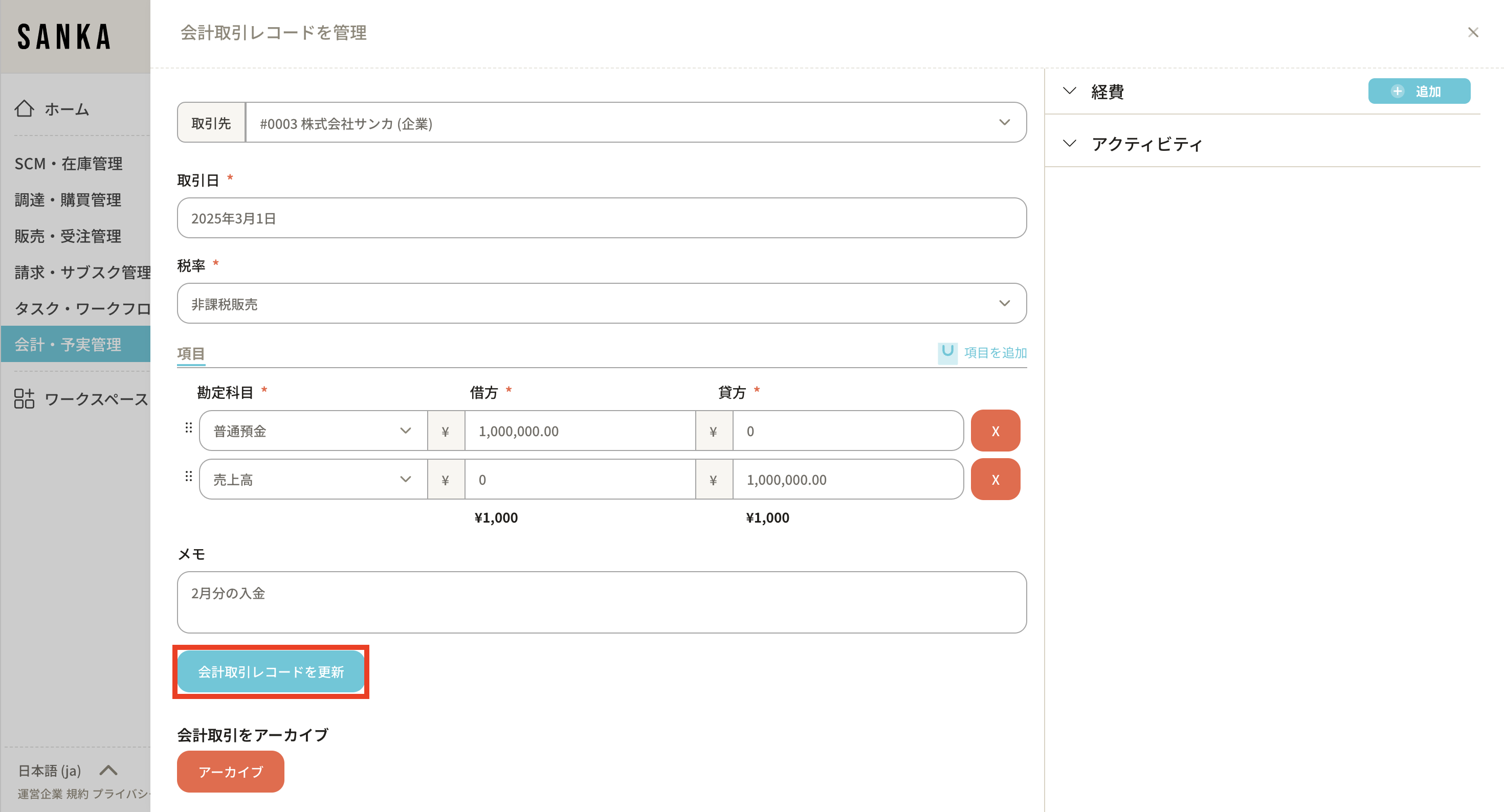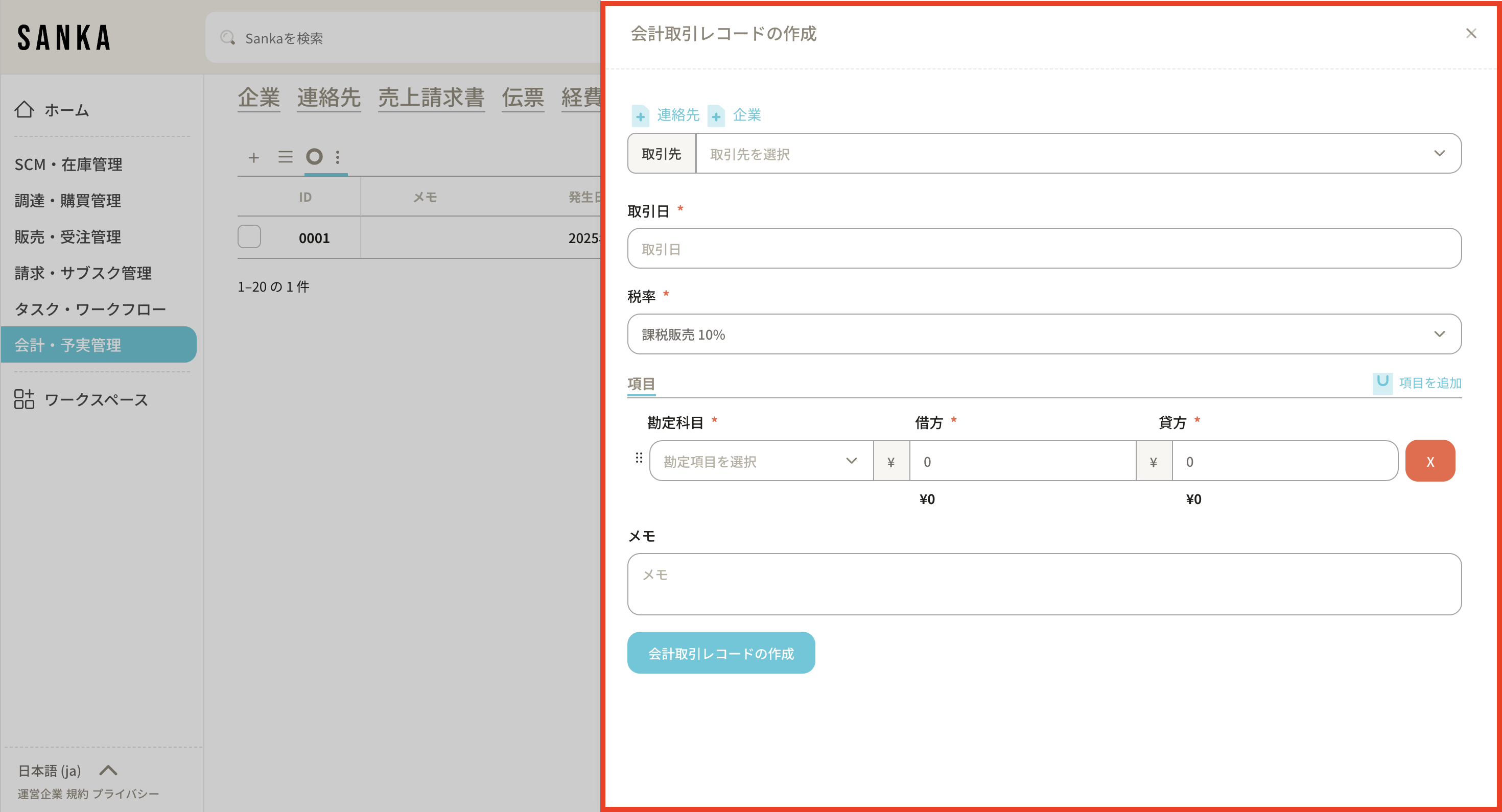 **② The "Create journal record" menu will be displayed, so enter the necessary information. **
