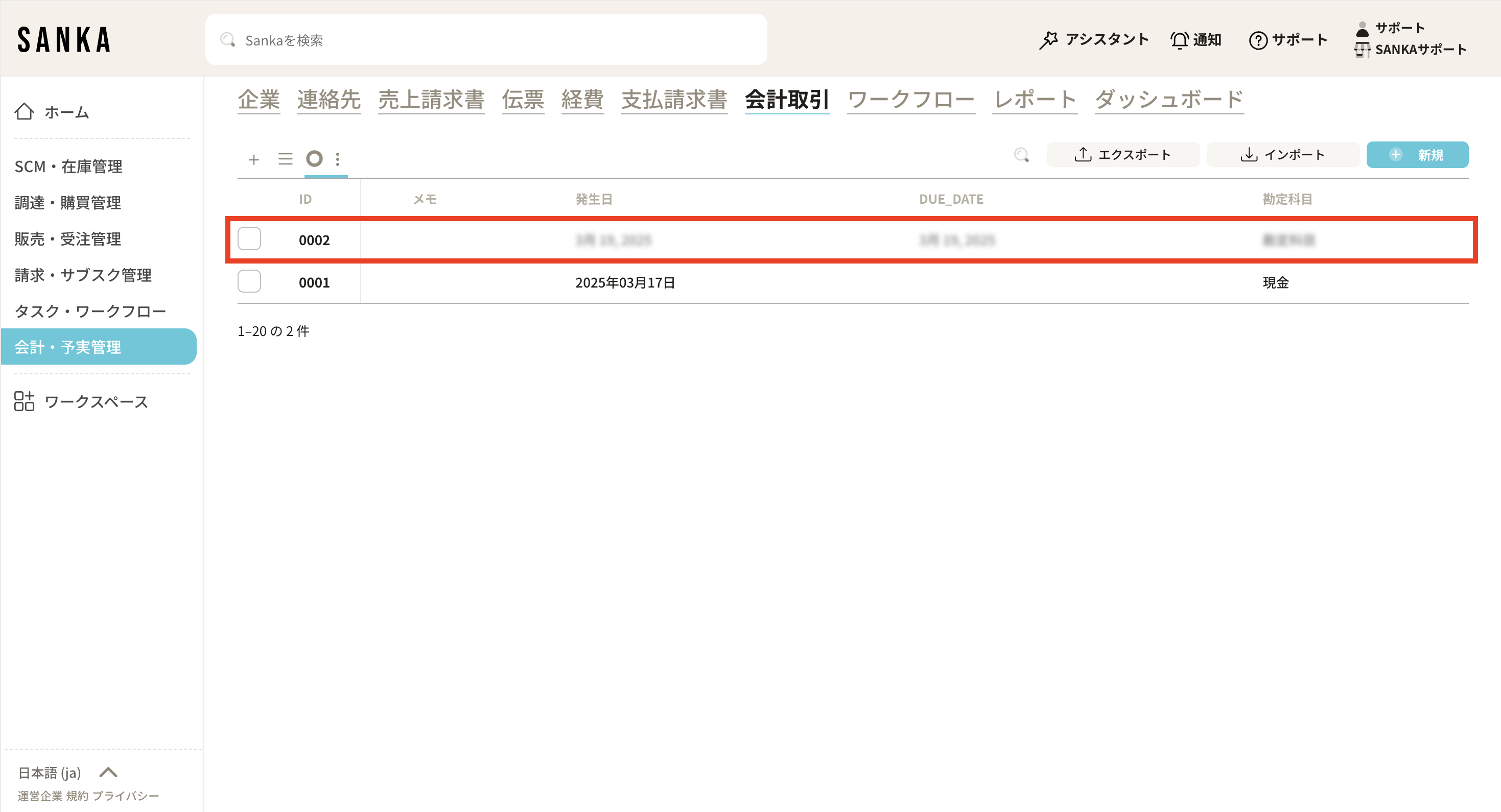 **“Business Partner”: Click the frame to display the transaction information that has already been registered, so select the appropriate one. You can add new customer information by pressing the "+Contact" and "+Company" buttons. **