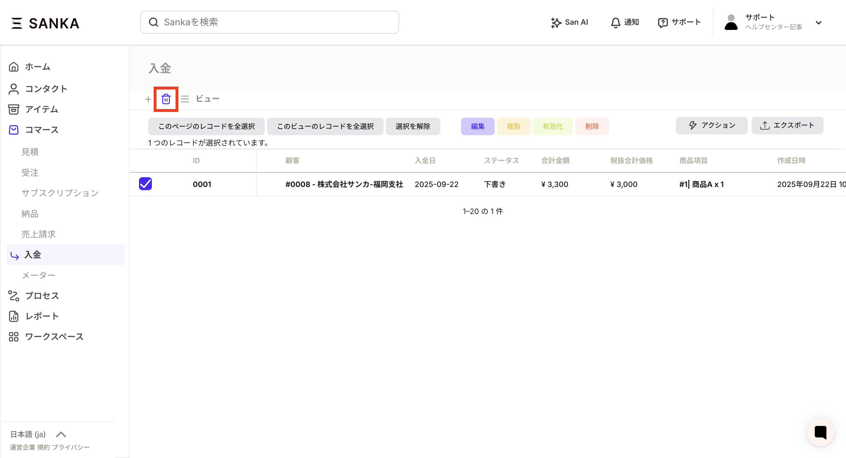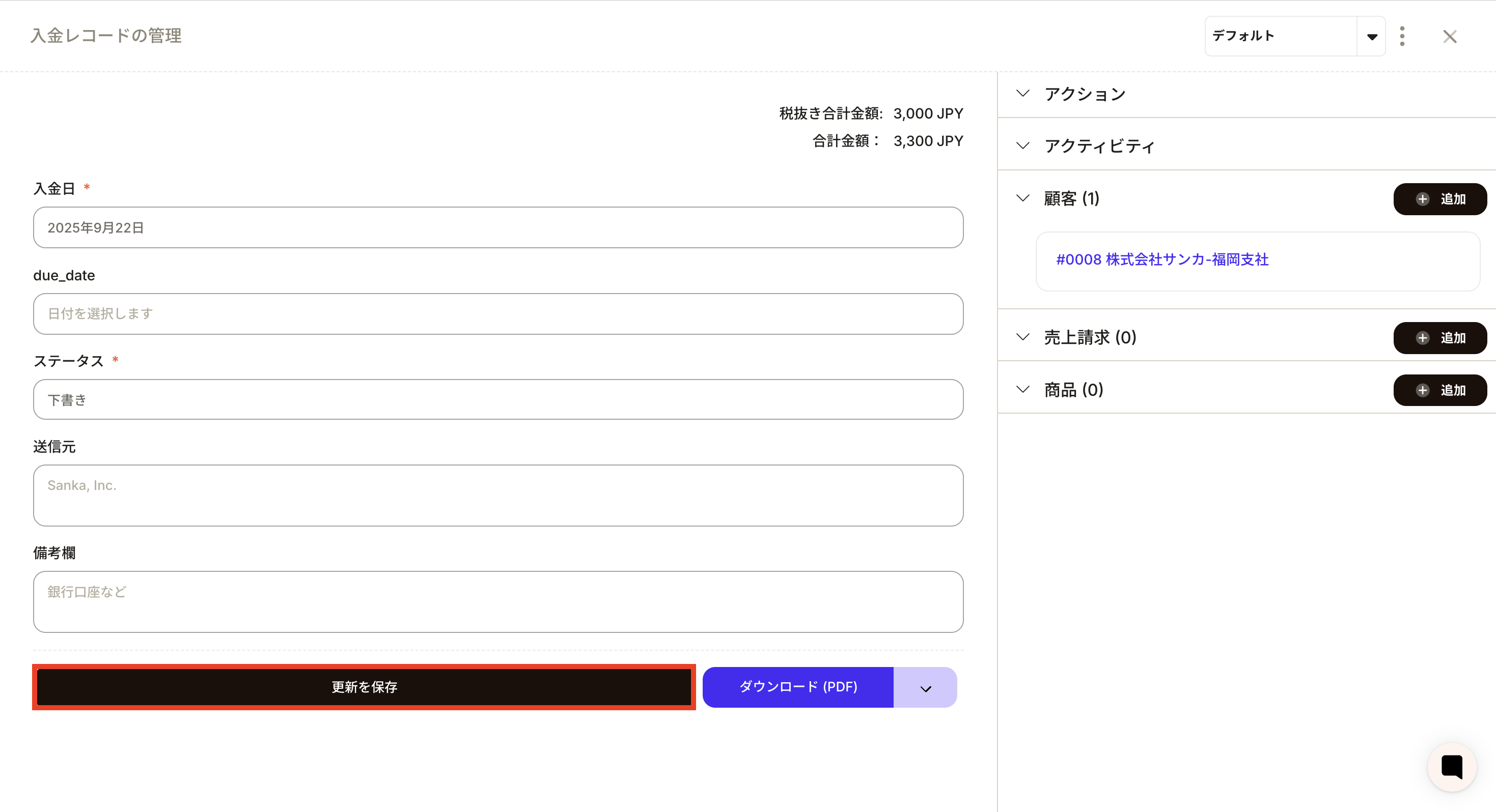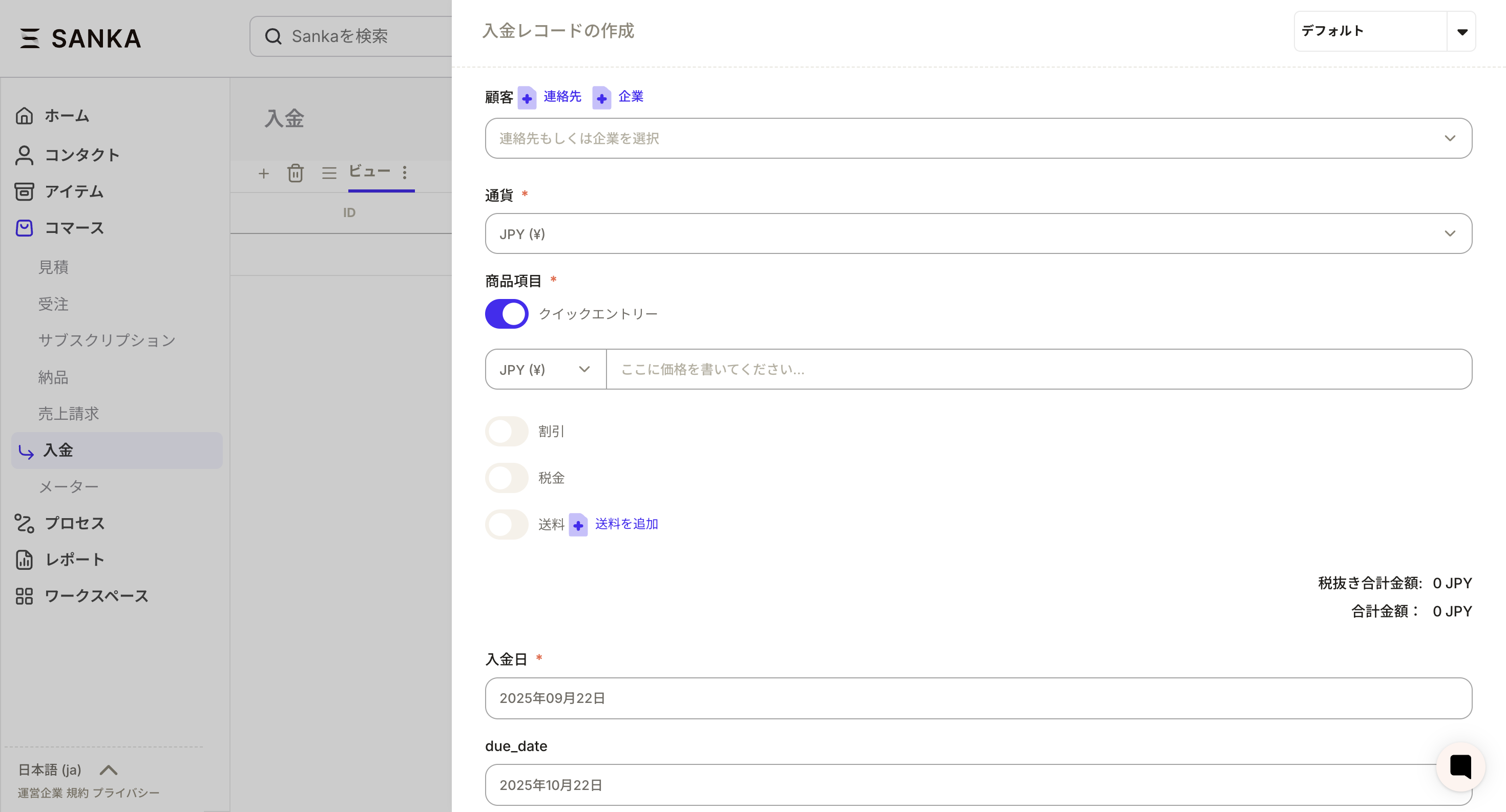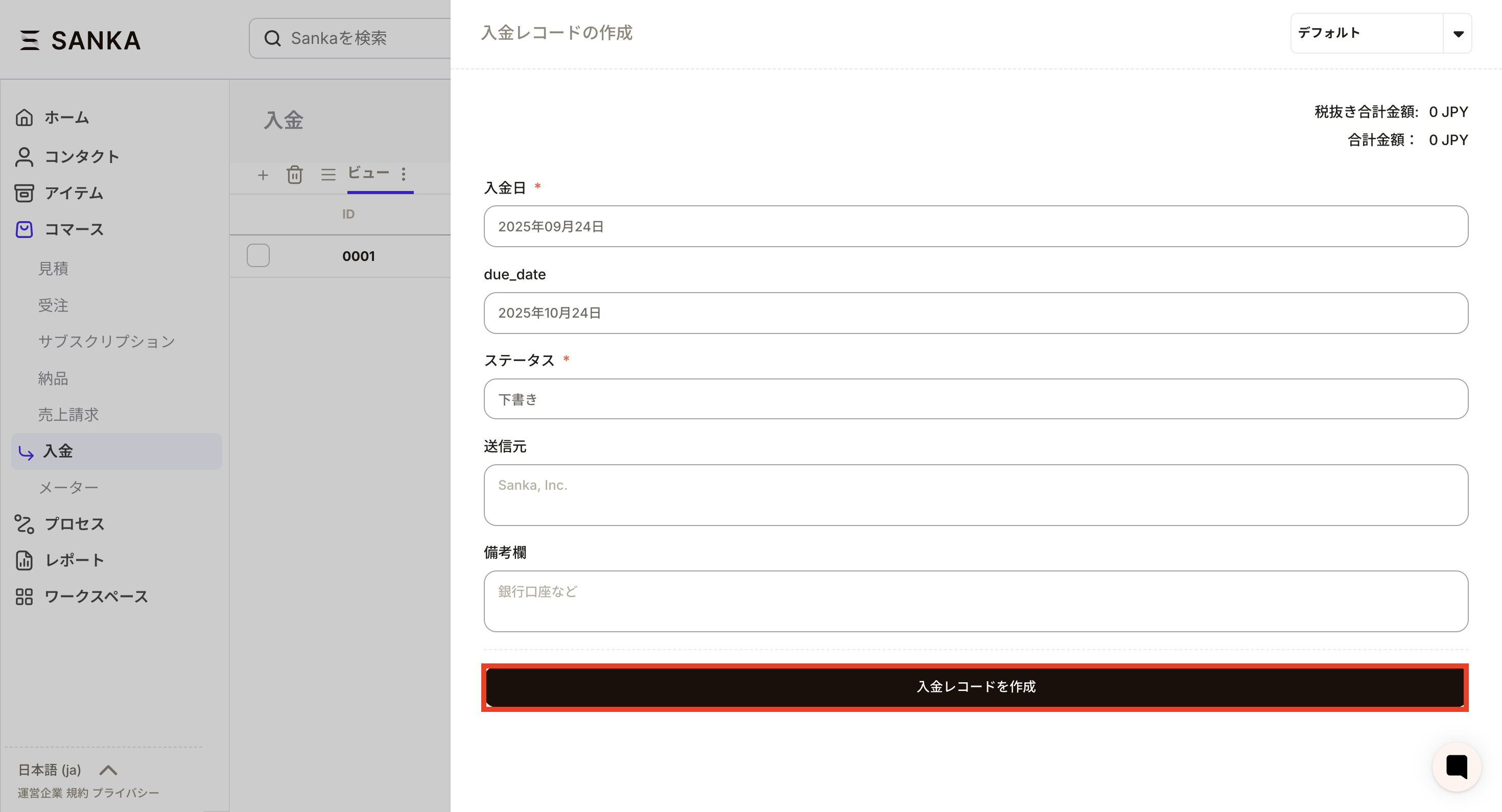 ②The “Create Deposit Record” screen will be displayed, so enter the necessary information.
