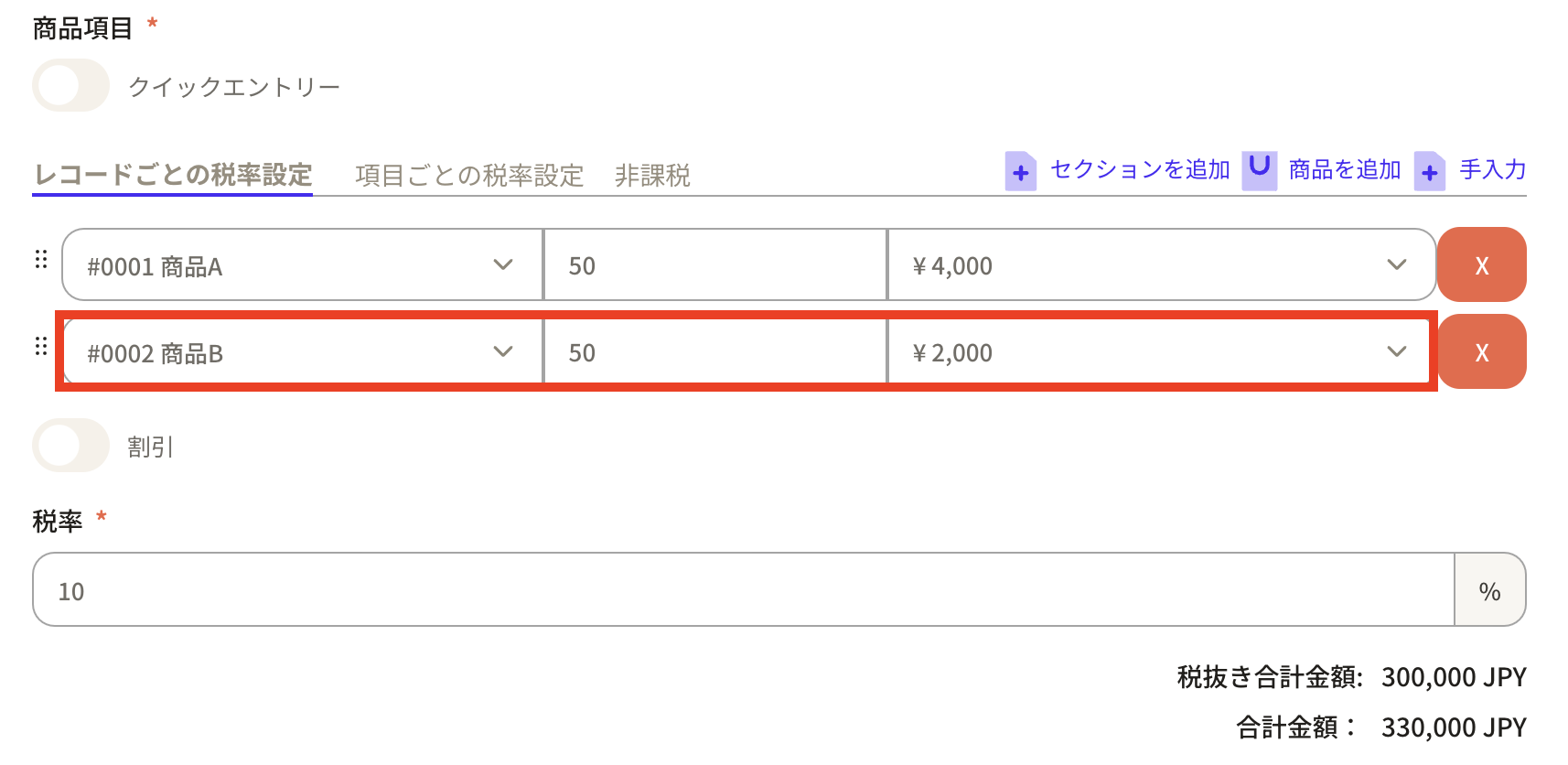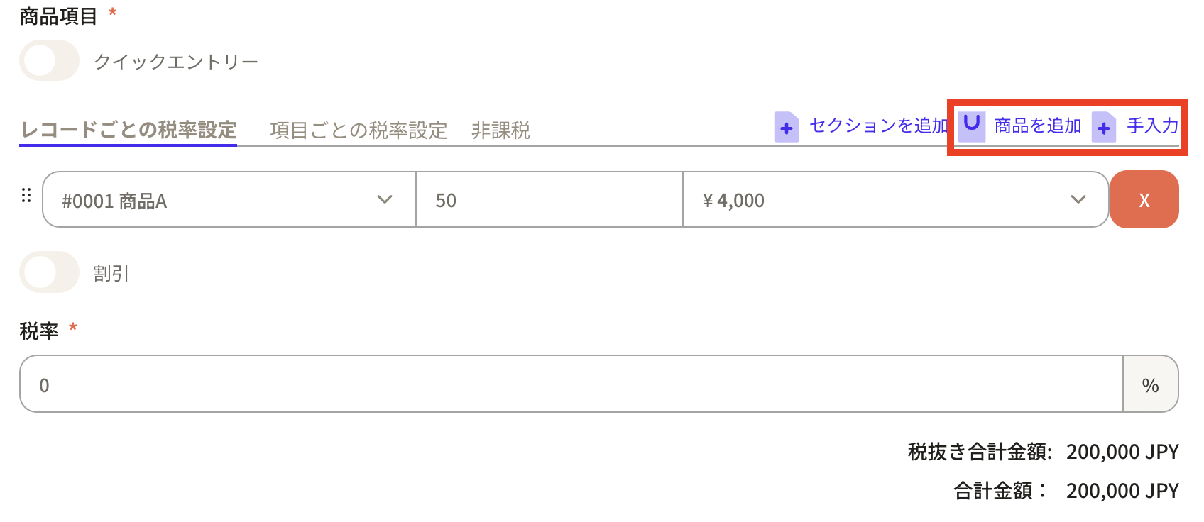 Before entering product items, first set the "tax rate".