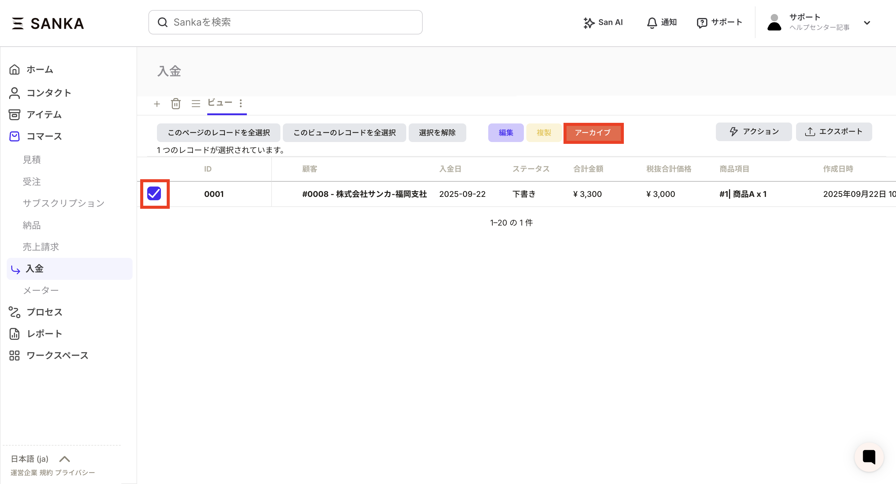 ⑤If you want to cancel the archive, press the Activate button. The activated record returns to the view.