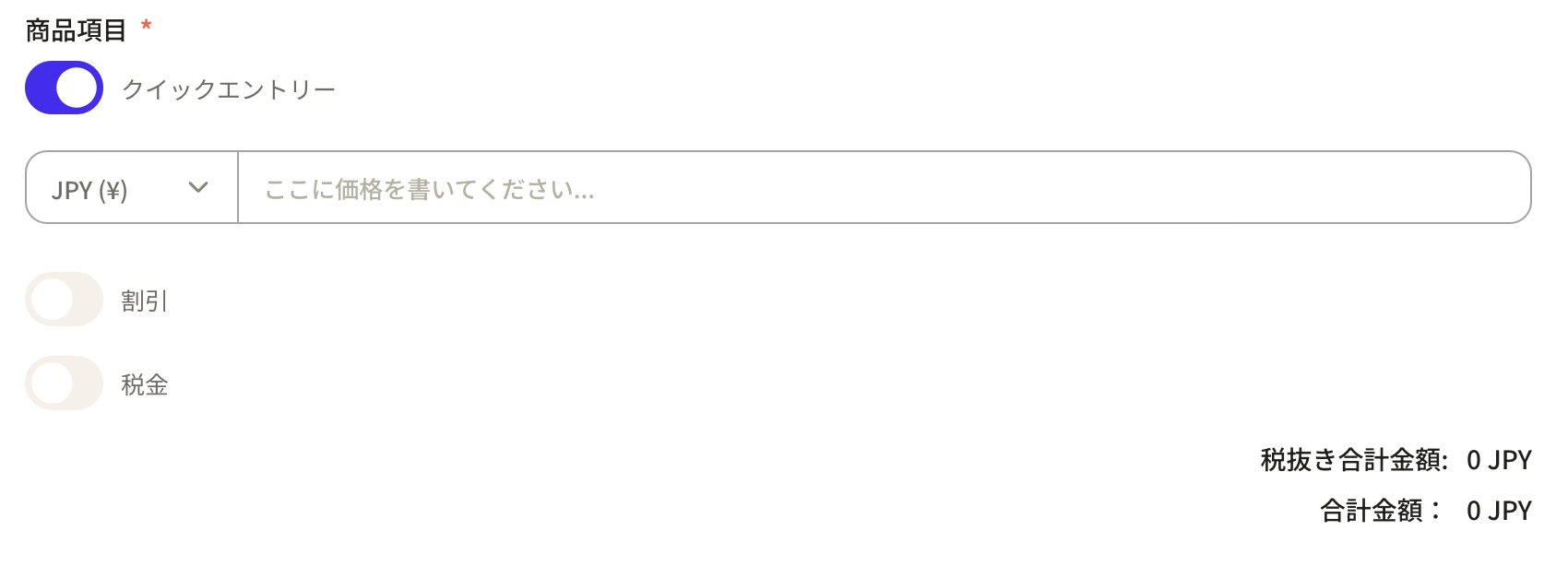 ⑥If you want to register product items, turn off quick entry.