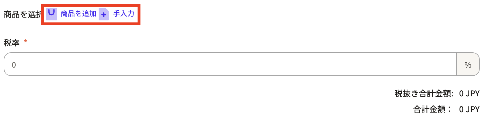 If you want to add a product item, press the "Add product" or "Manual input" button.