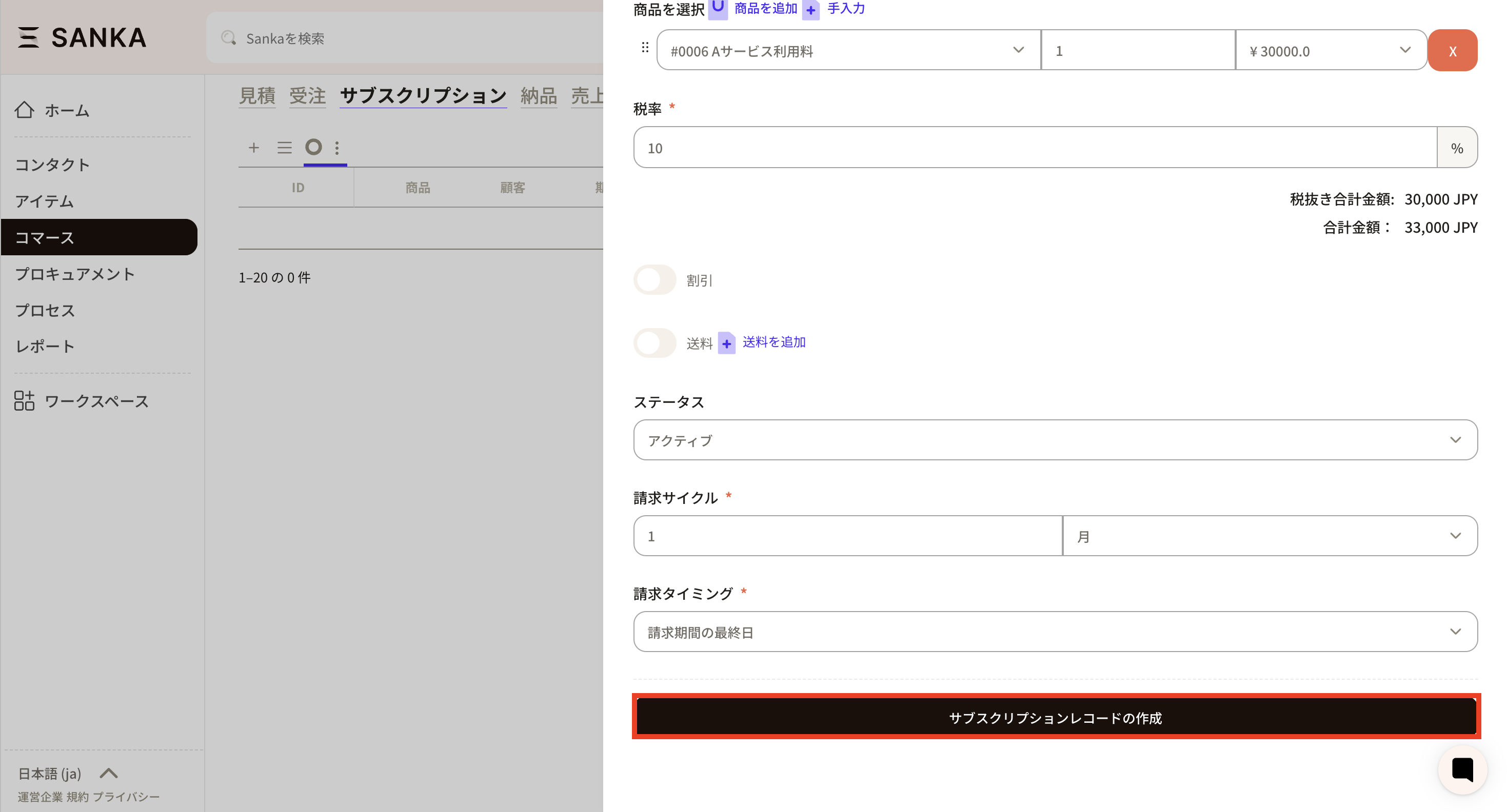 ②The "Create subscription record" menu will be displayed, so enter the required information.