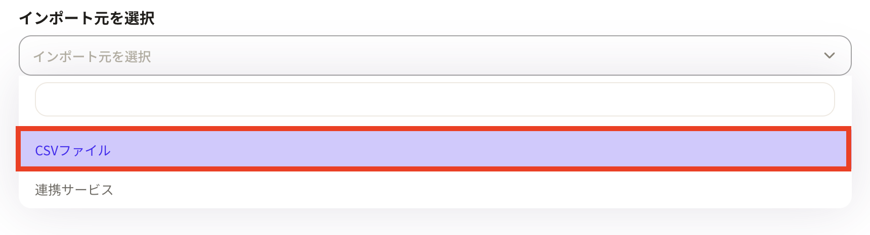 ②「インポート」画面が表示されます。