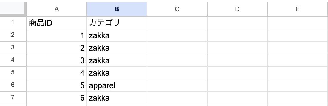 レコードID を控えておきます。ID または独自の商品ユニークIDを必ず入れます。| 商品ID | 商品名 | 仕入先ID | 得意先ID |