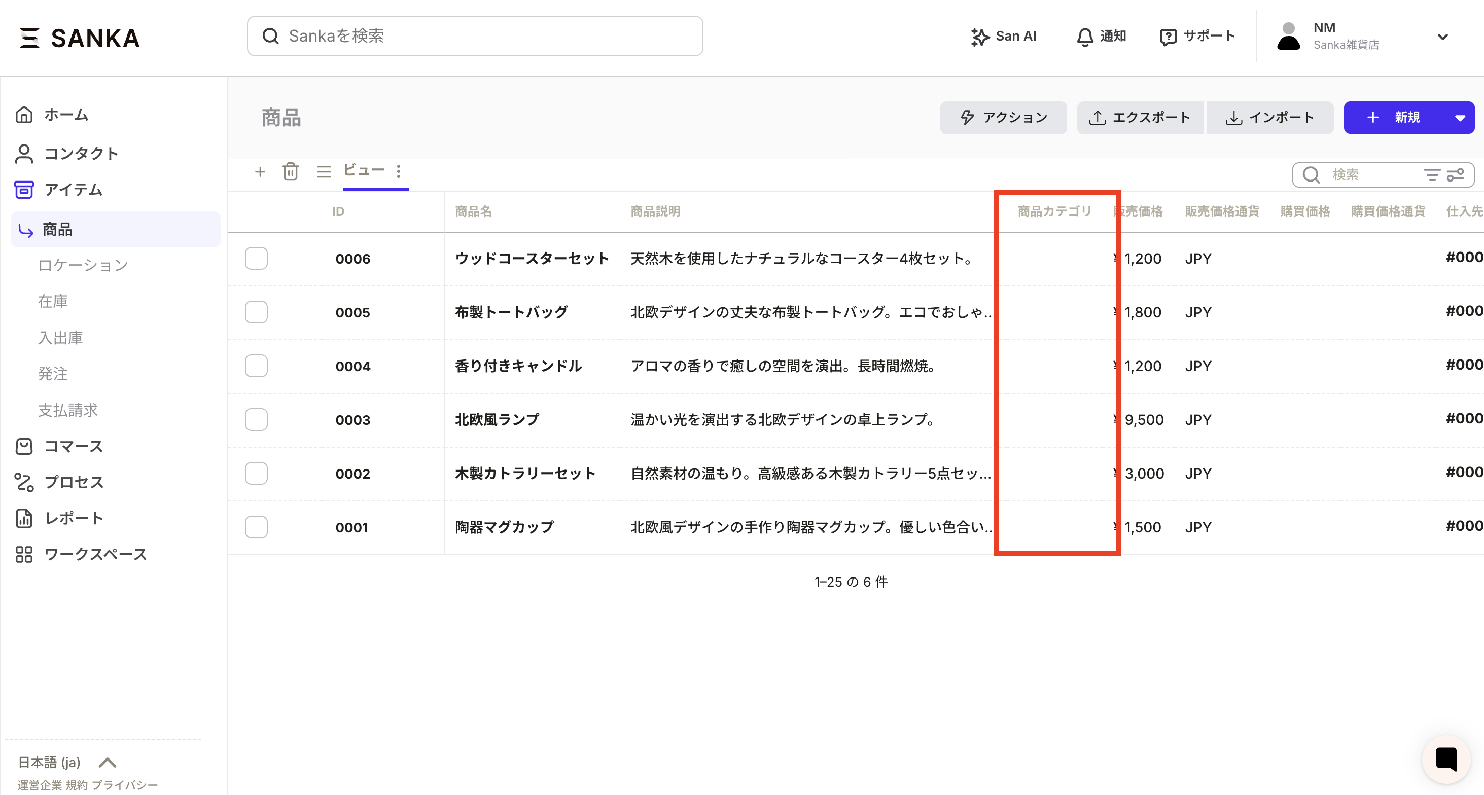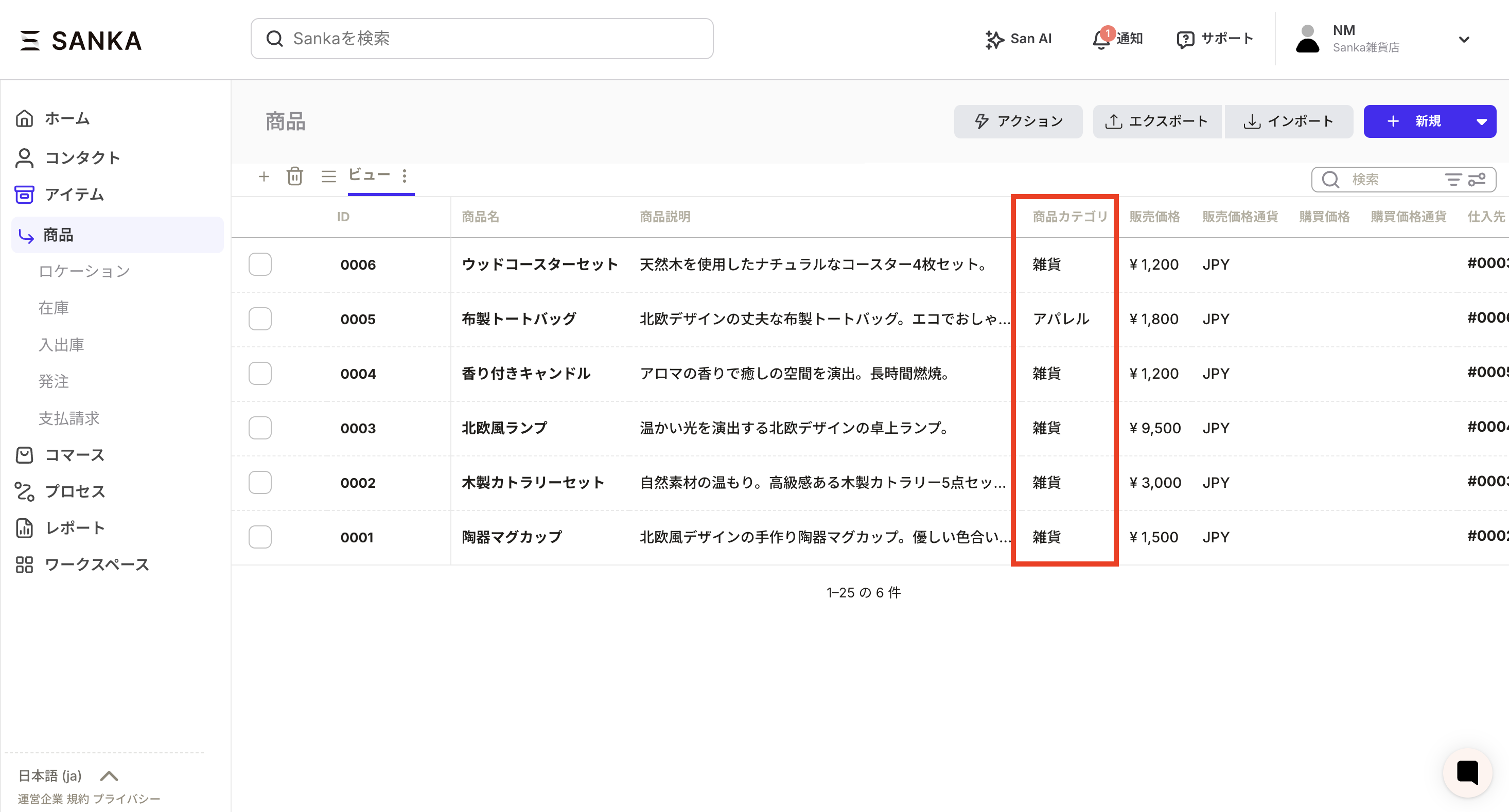 ⑦例として追加した商品カテゴリというプロパティに情報が入りました。