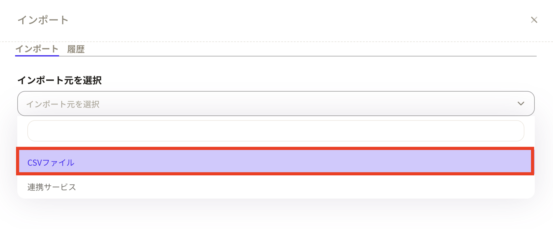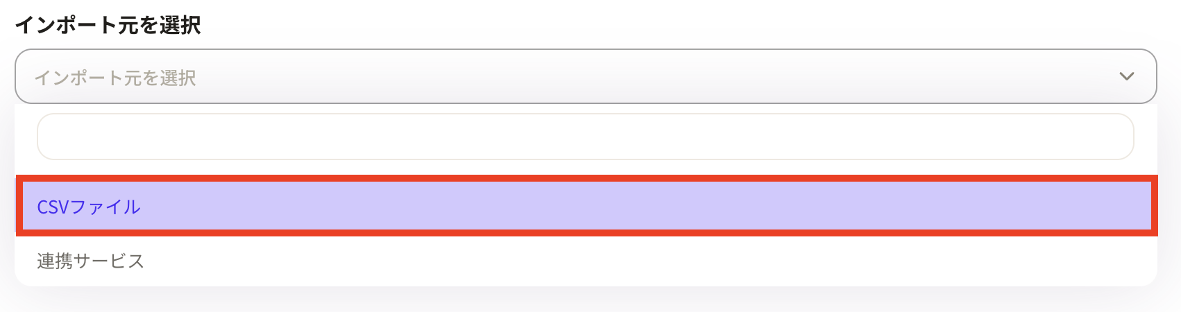⑤インポート元を選択は「CSVファイル」を選択します。