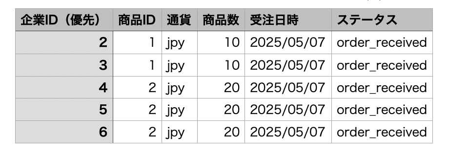 CSVファイルのデータ中には、起点とする受注IDと受注ステータスを入れておきます。データ入力の間違いに気をつけましょう。
