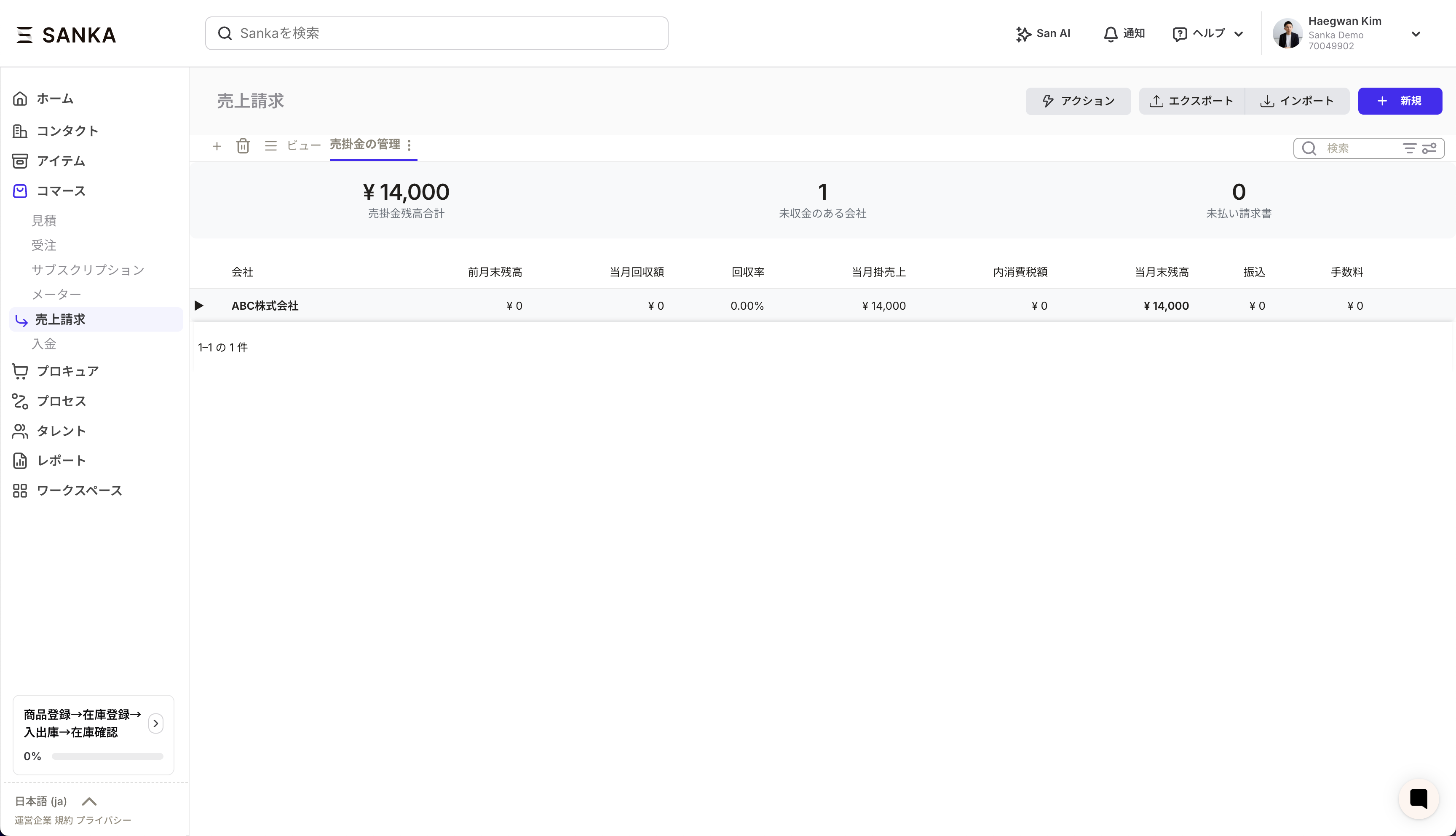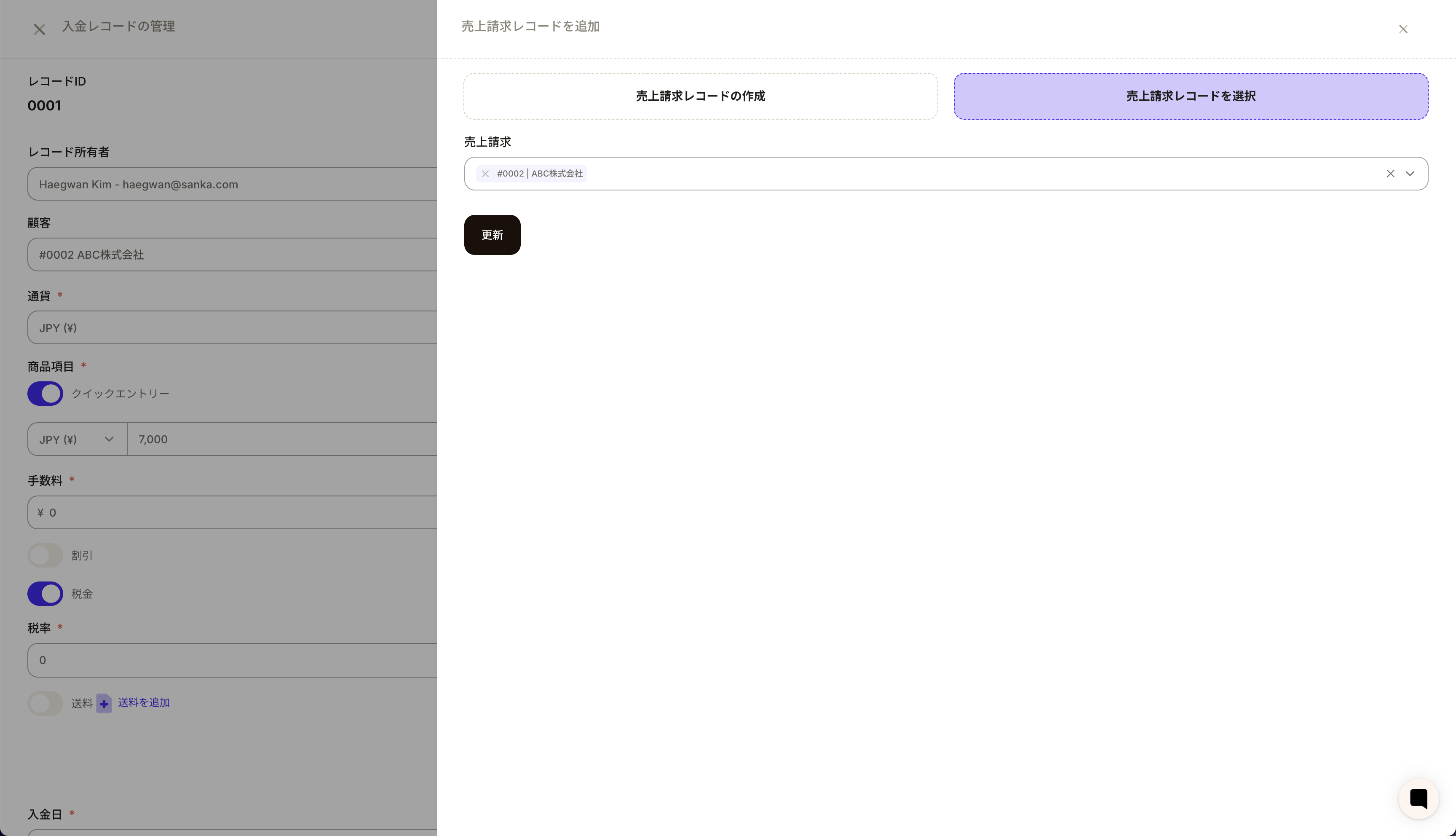 請求内容を確定して売上請求レコードができたら、Sankaから