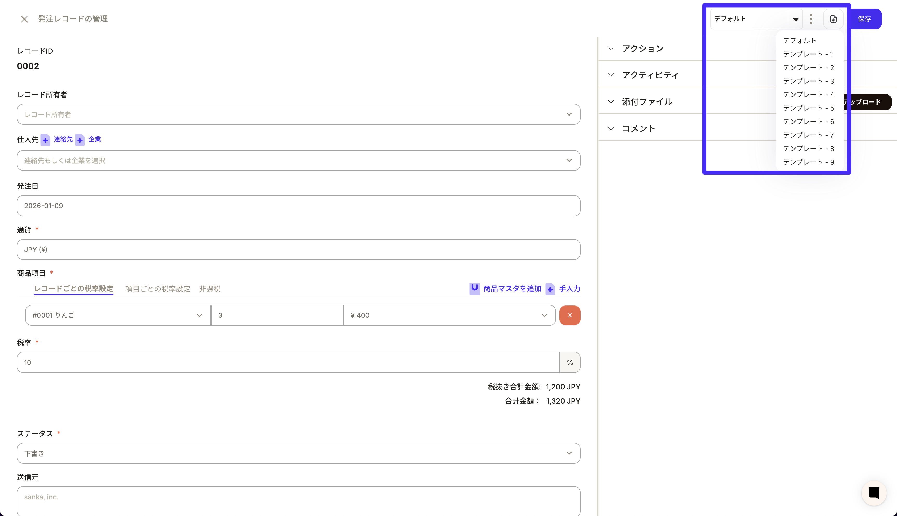 ステップ4:発注レコードを作成する