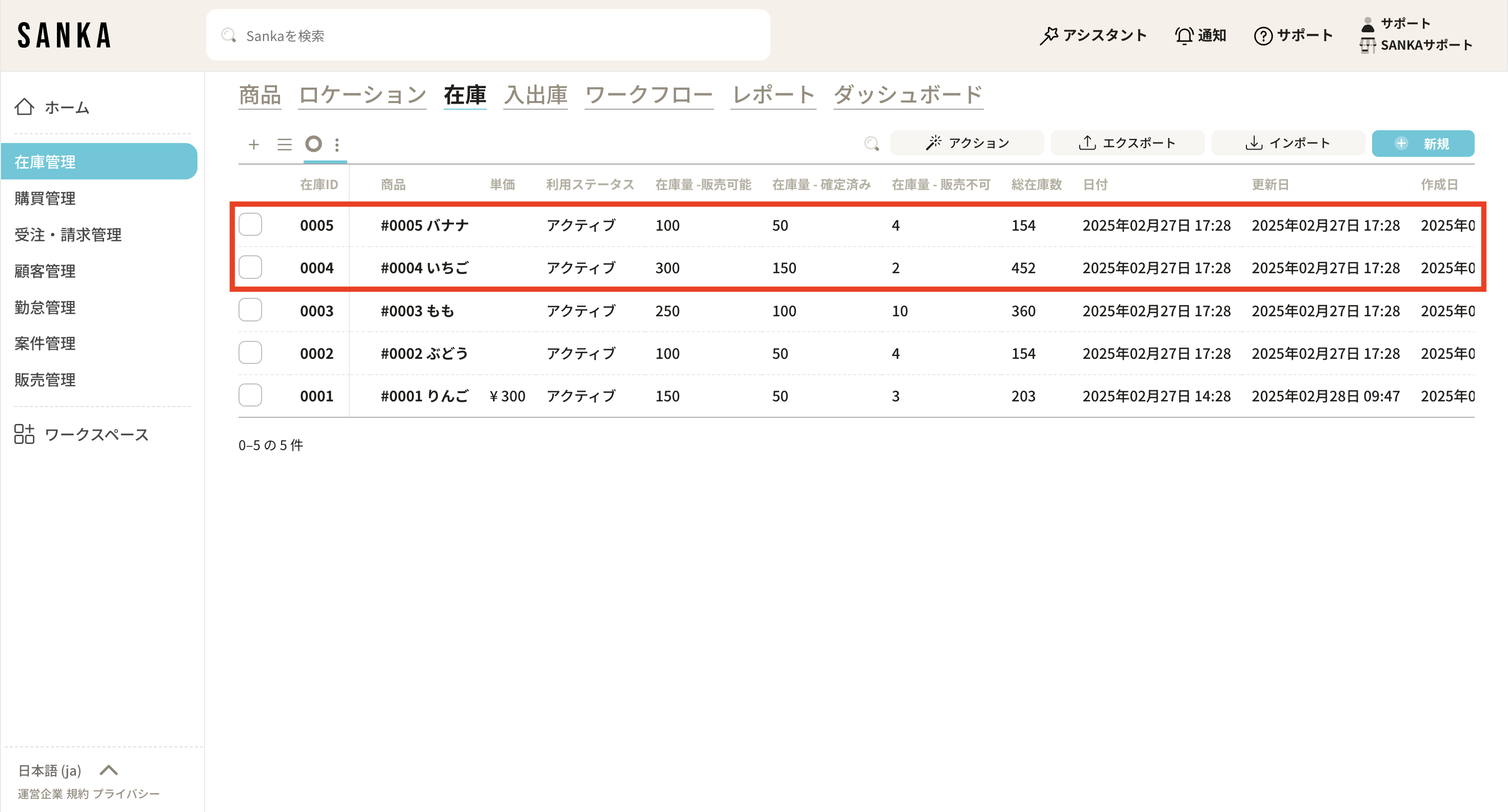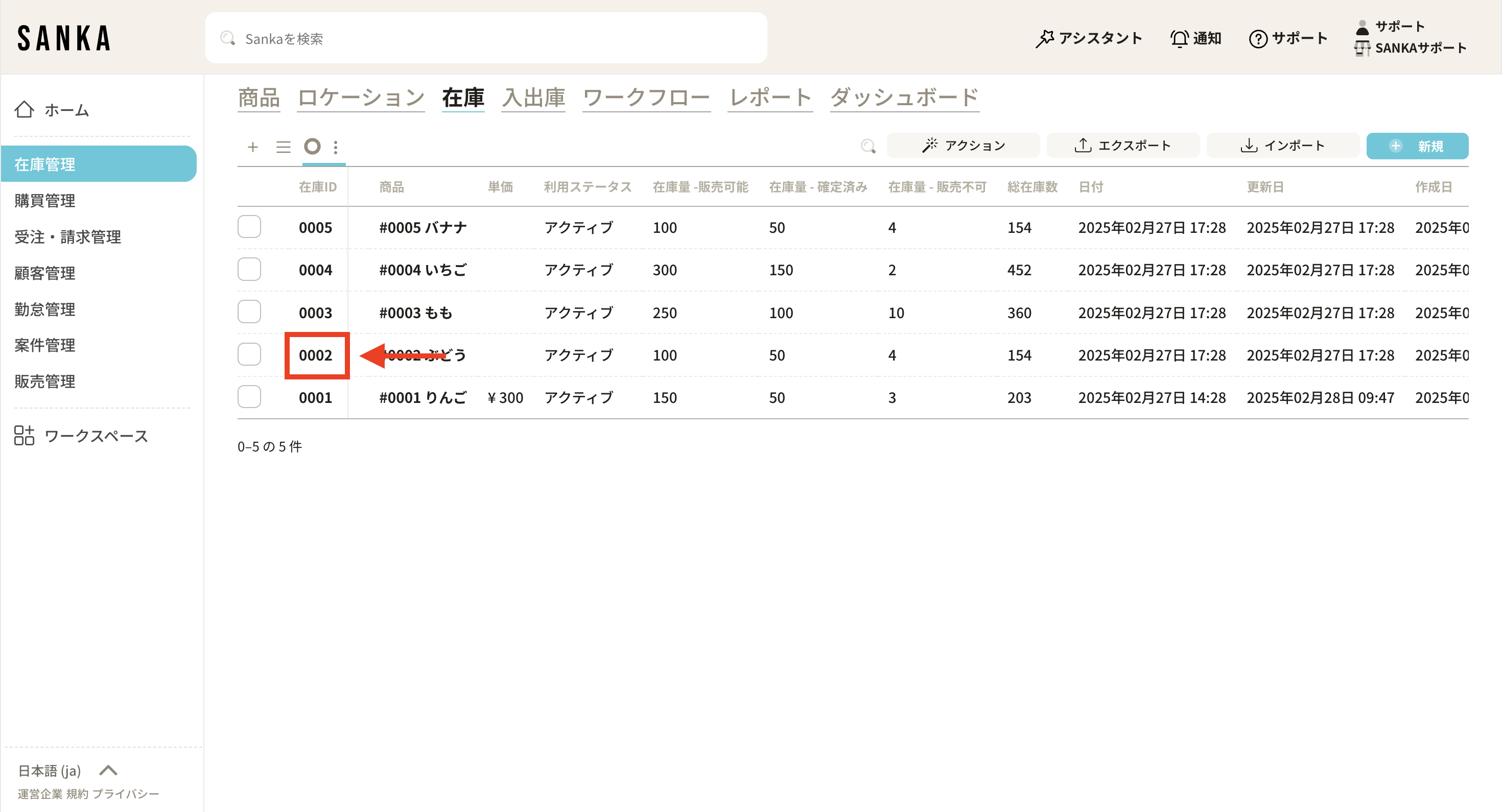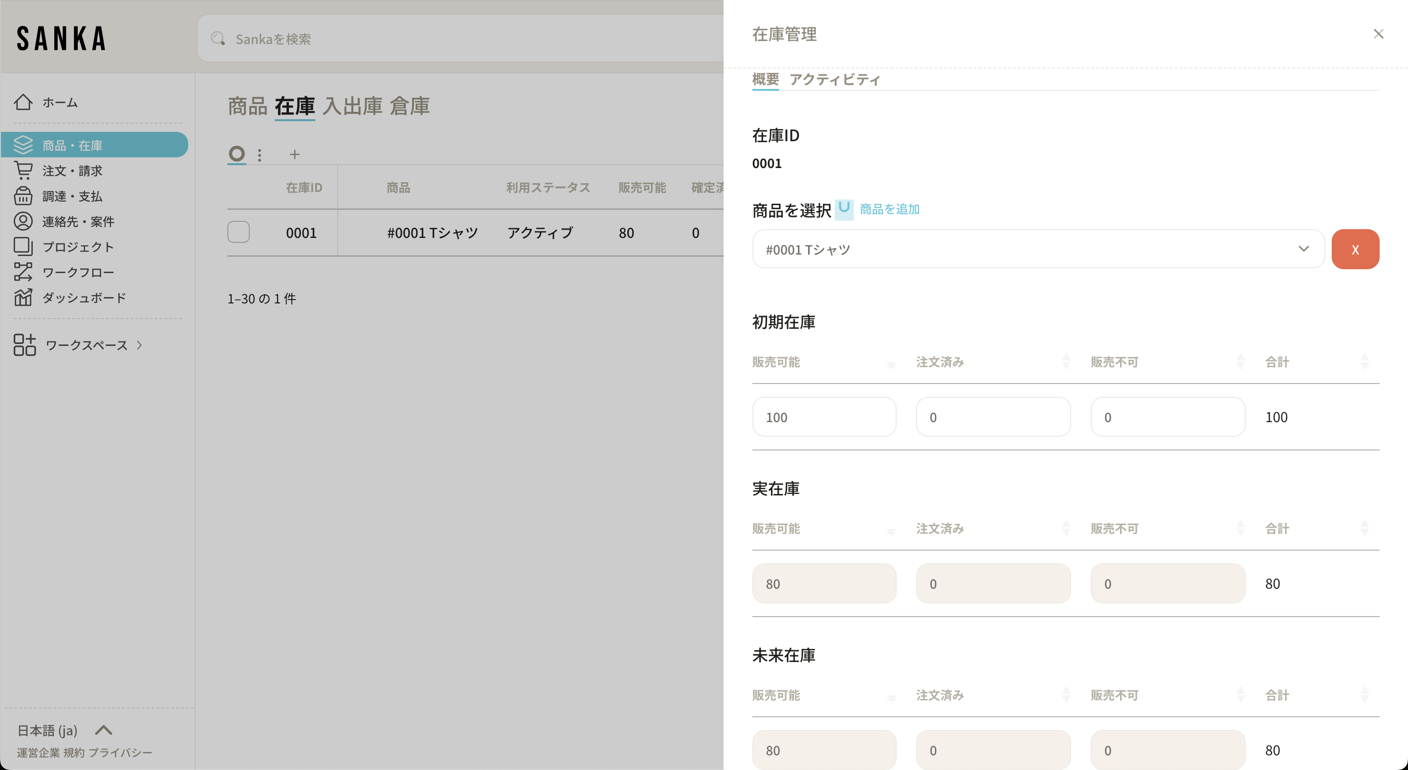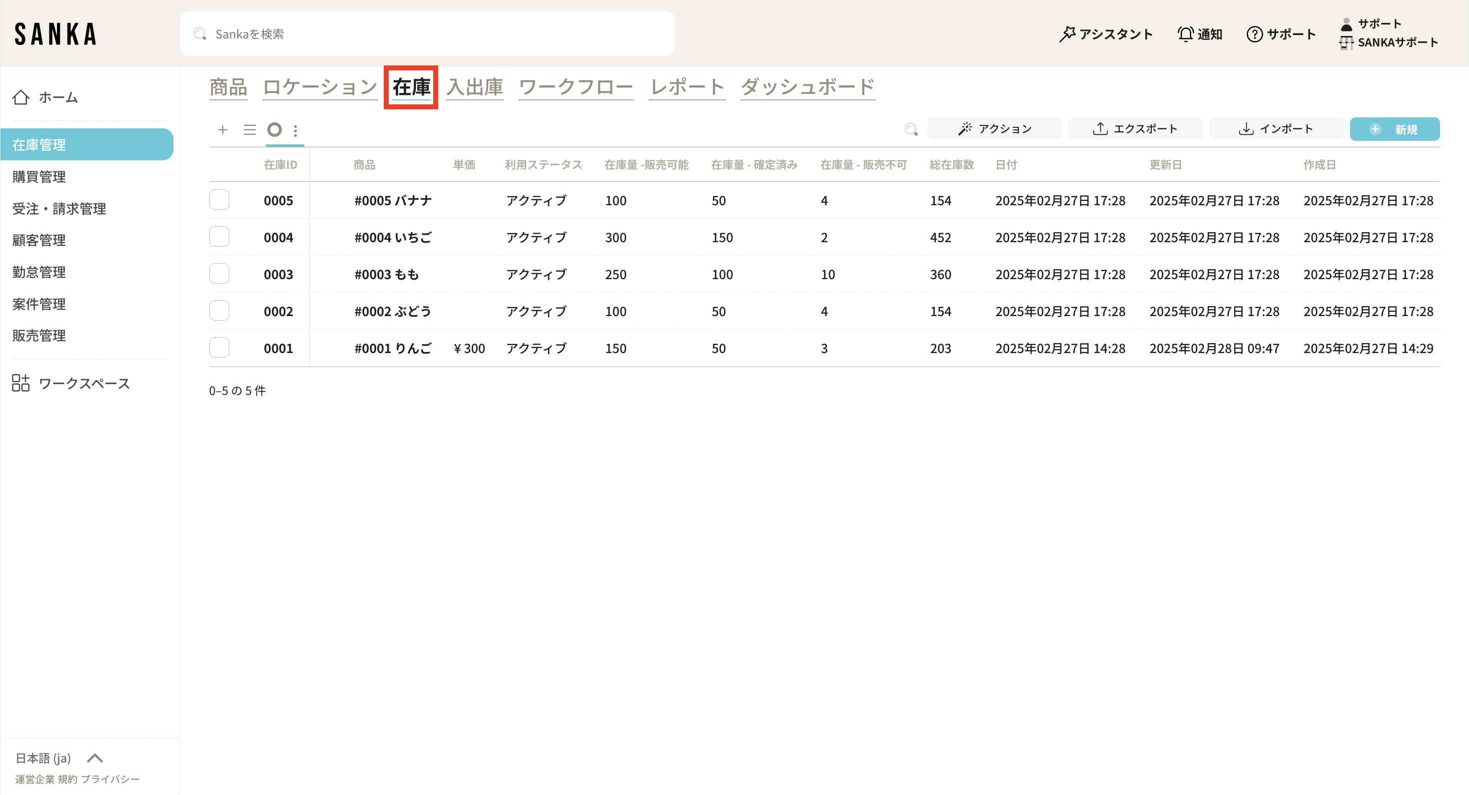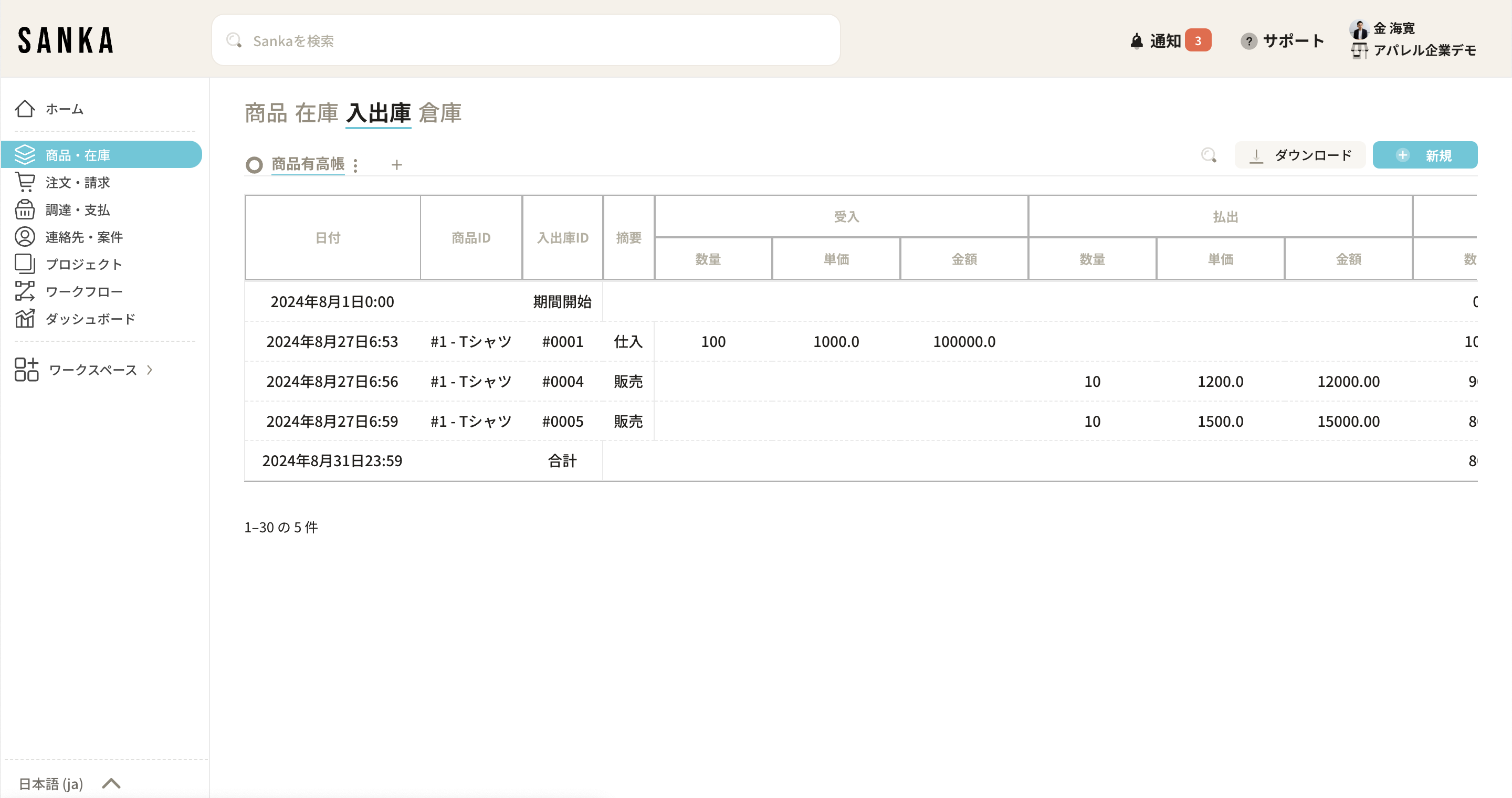 Sankaでは入庫を受入、出庫を払出として管理しており、システムが自動的に平均金額を算出してくれます。