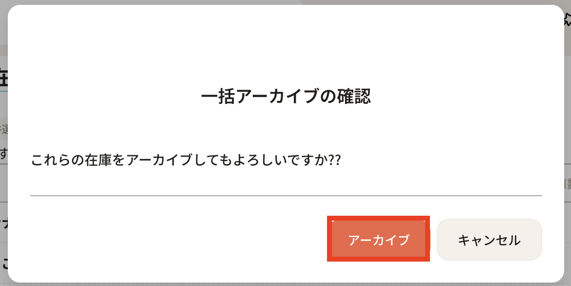 ②確認のためのポップアップ画面が表示されるので「アーカイブボタン」を押しましょう。