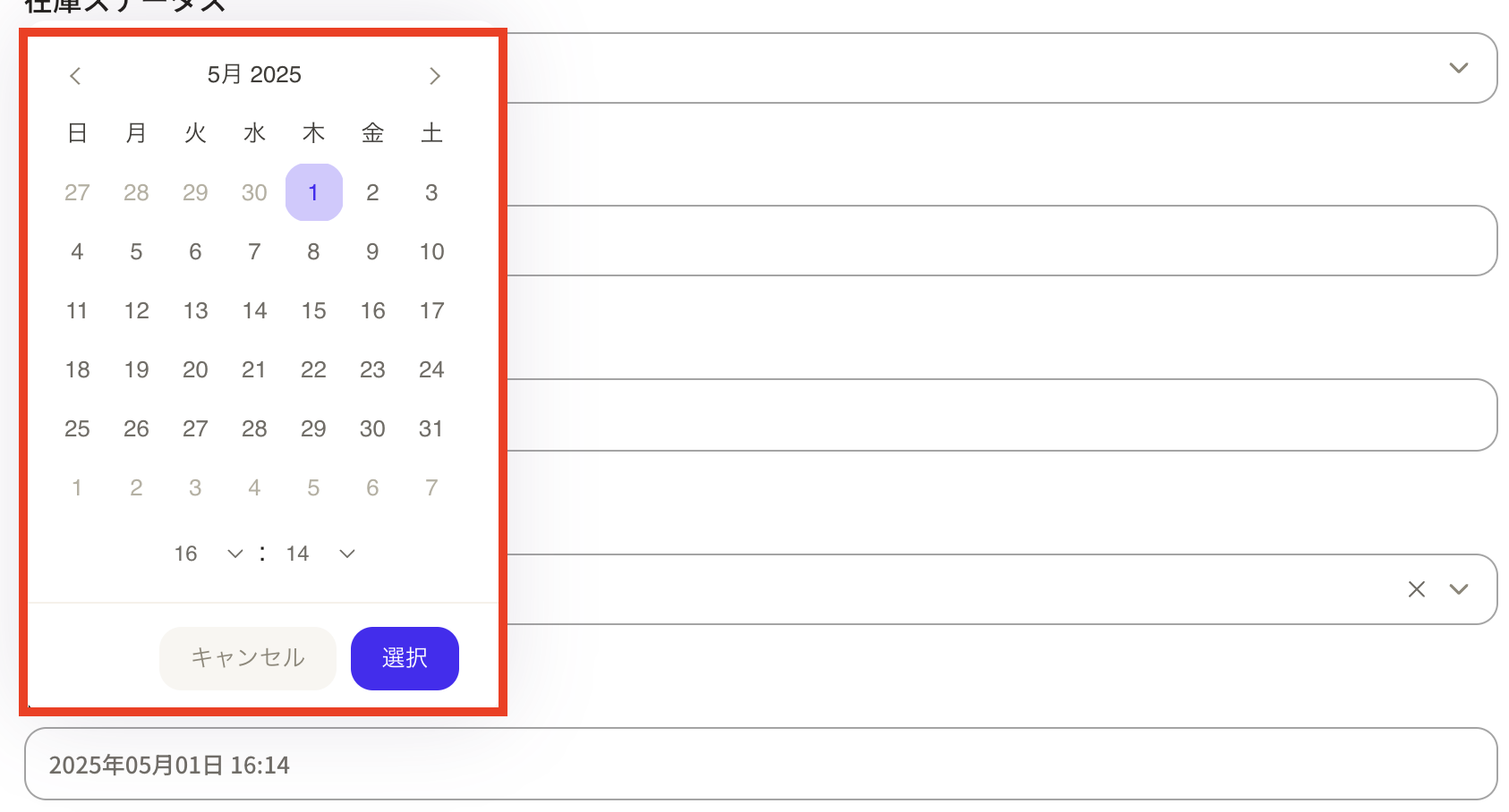 ⑧「日付」は自動でリアルタイムで設定されますが、カレンダーにて日付を指定することも可能です。