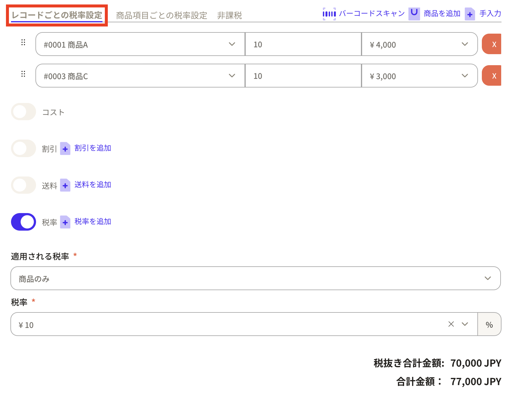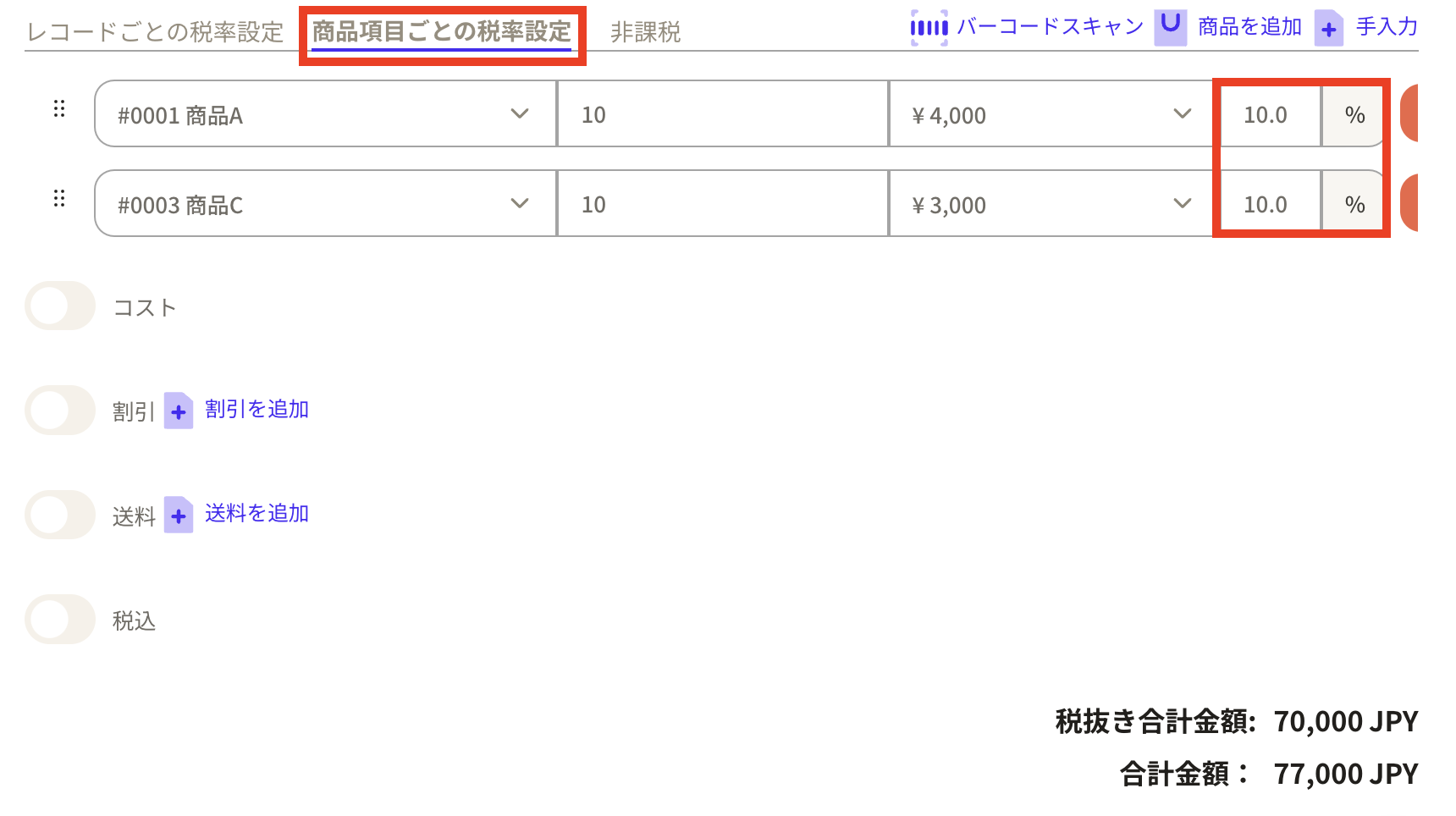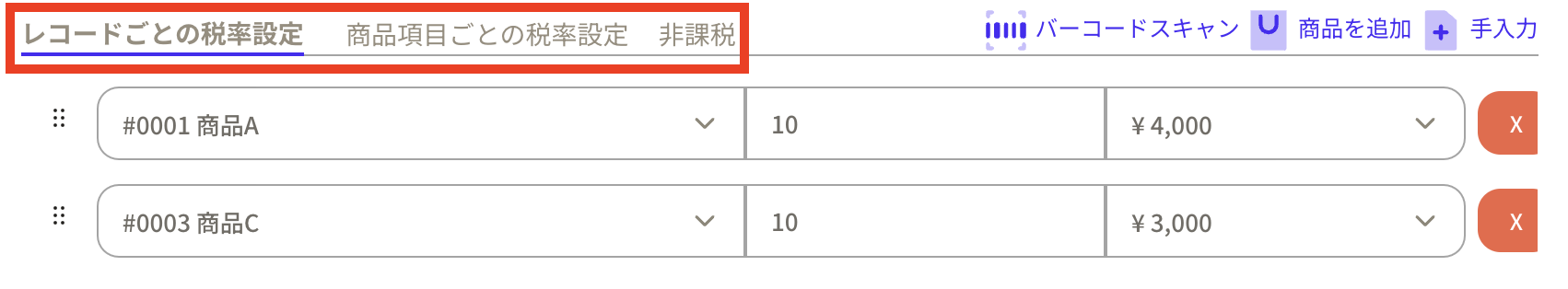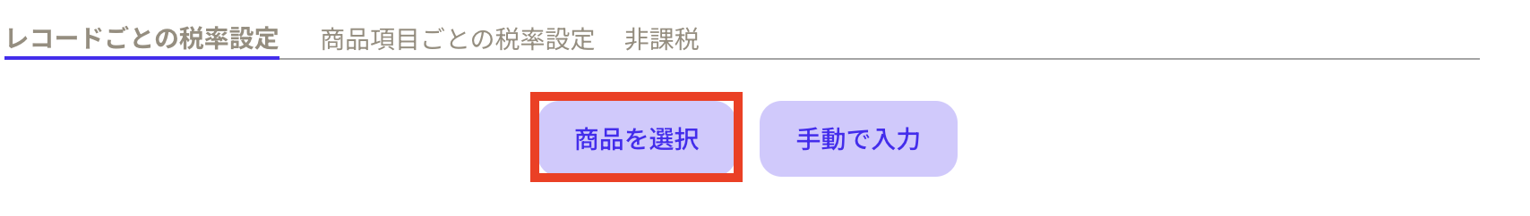 税率設定は3つあります。該当するものをクリックすると設定されます。