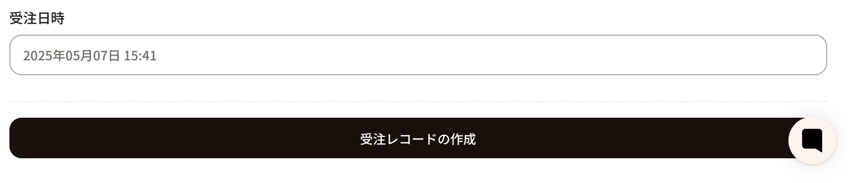 ⑪「受注日時」は現在の時刻が表示されています。また、枠をクリックするとカレンダーが表示されるので手動で設定することも可能です。必要事項を入力をしたら「受注レコードの作成」をボタンを押します。
