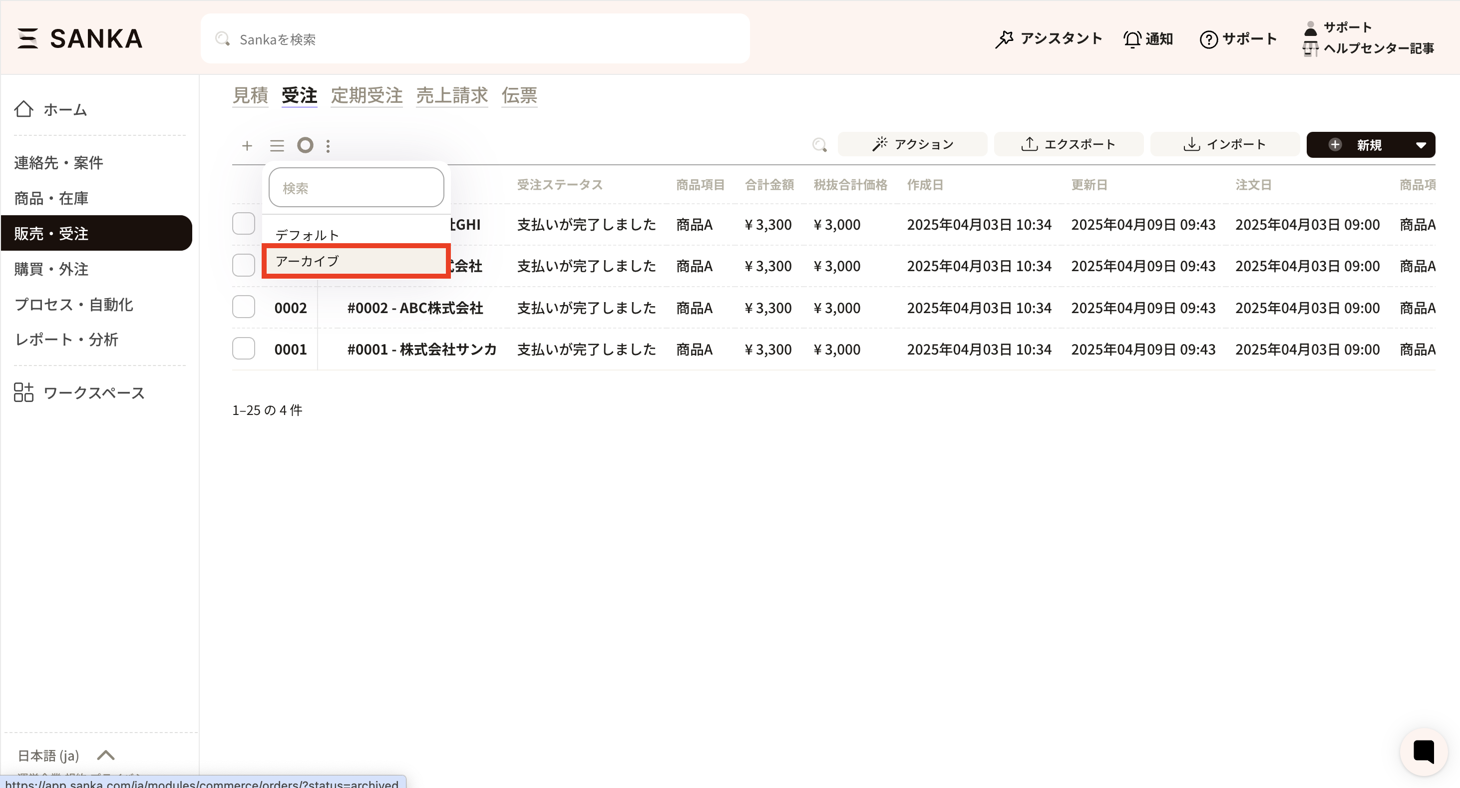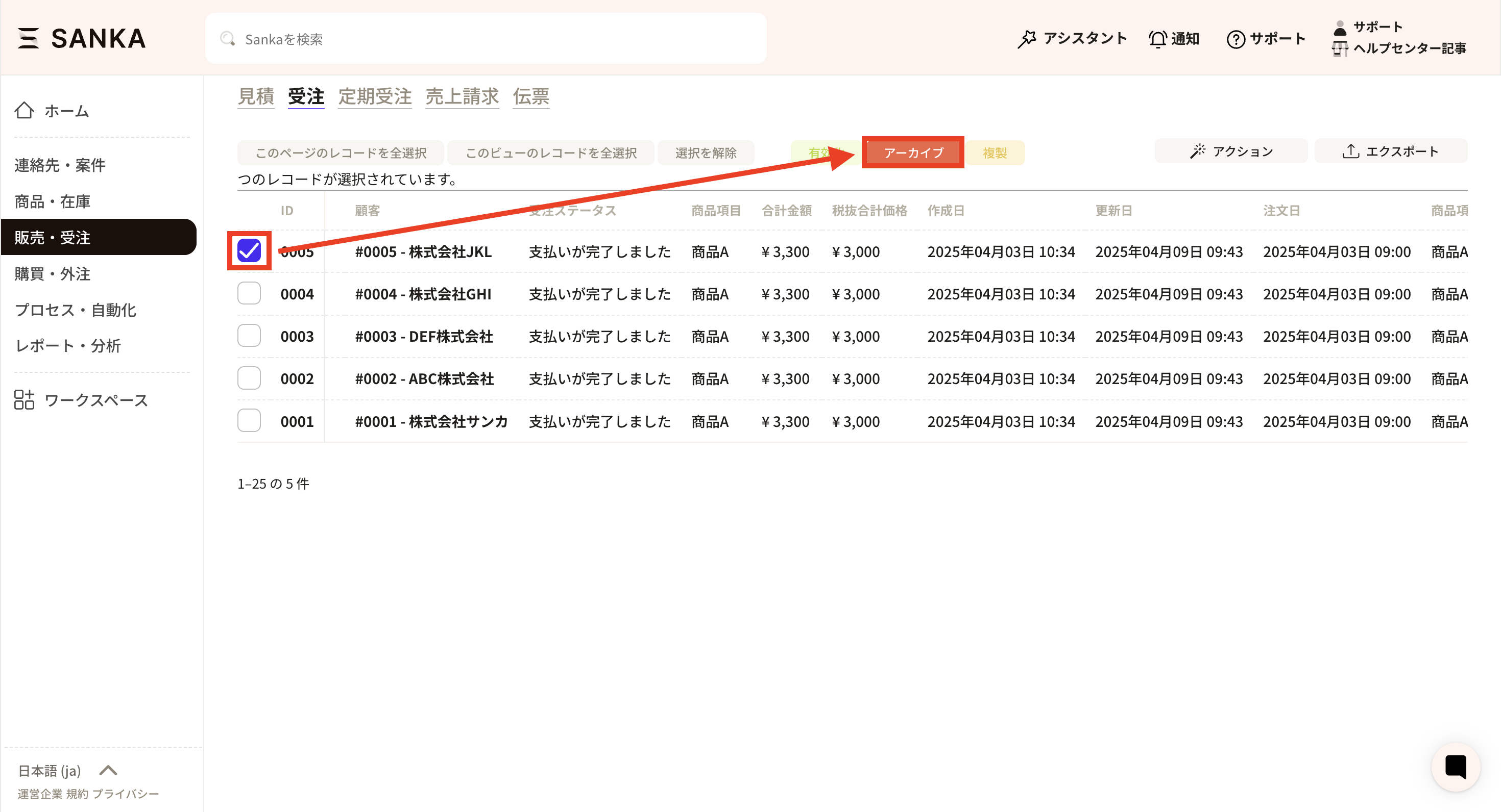 ③アーカイブされたレコードは一覧テーブルから消えます。