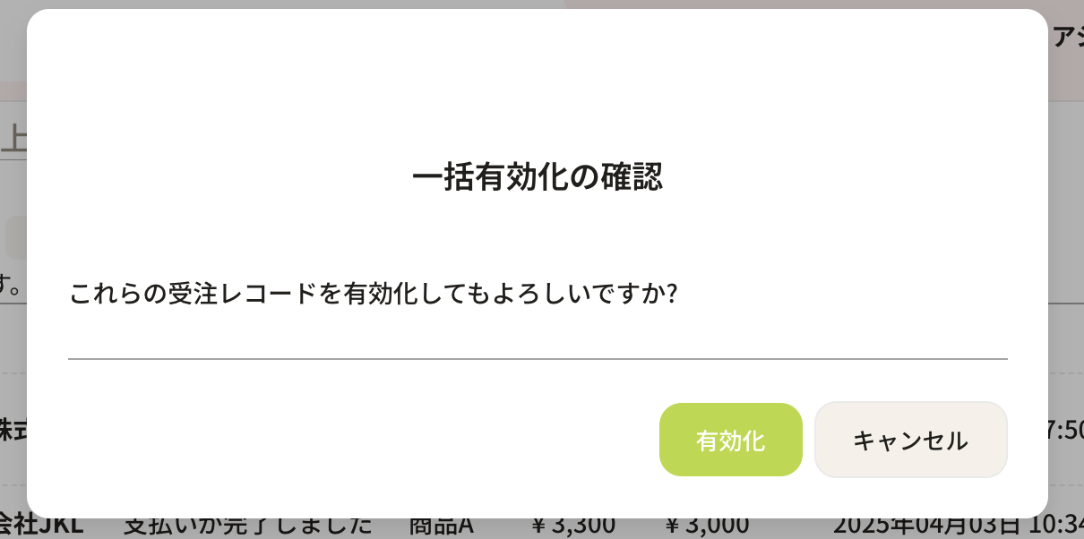 ⑦元に戻したいレコードのチェックボックスをクリックして有効化ボタンを押します。