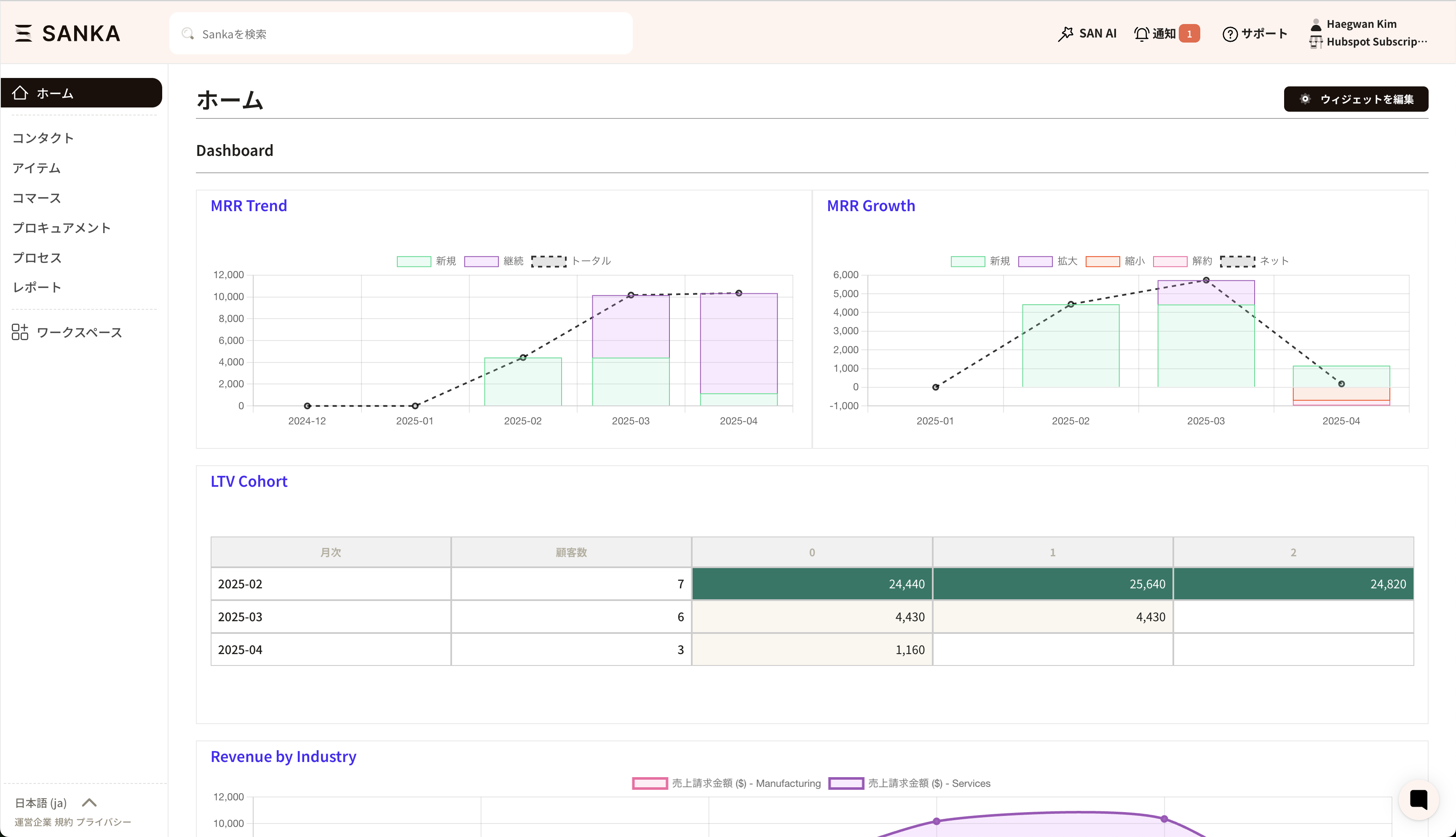 「どの業界の顧客が収益性が高いのか」「どの商品カテゴリがリテンションに貢献しているのか」など、商品戦略・営業戦略の見直しにも直結します。
