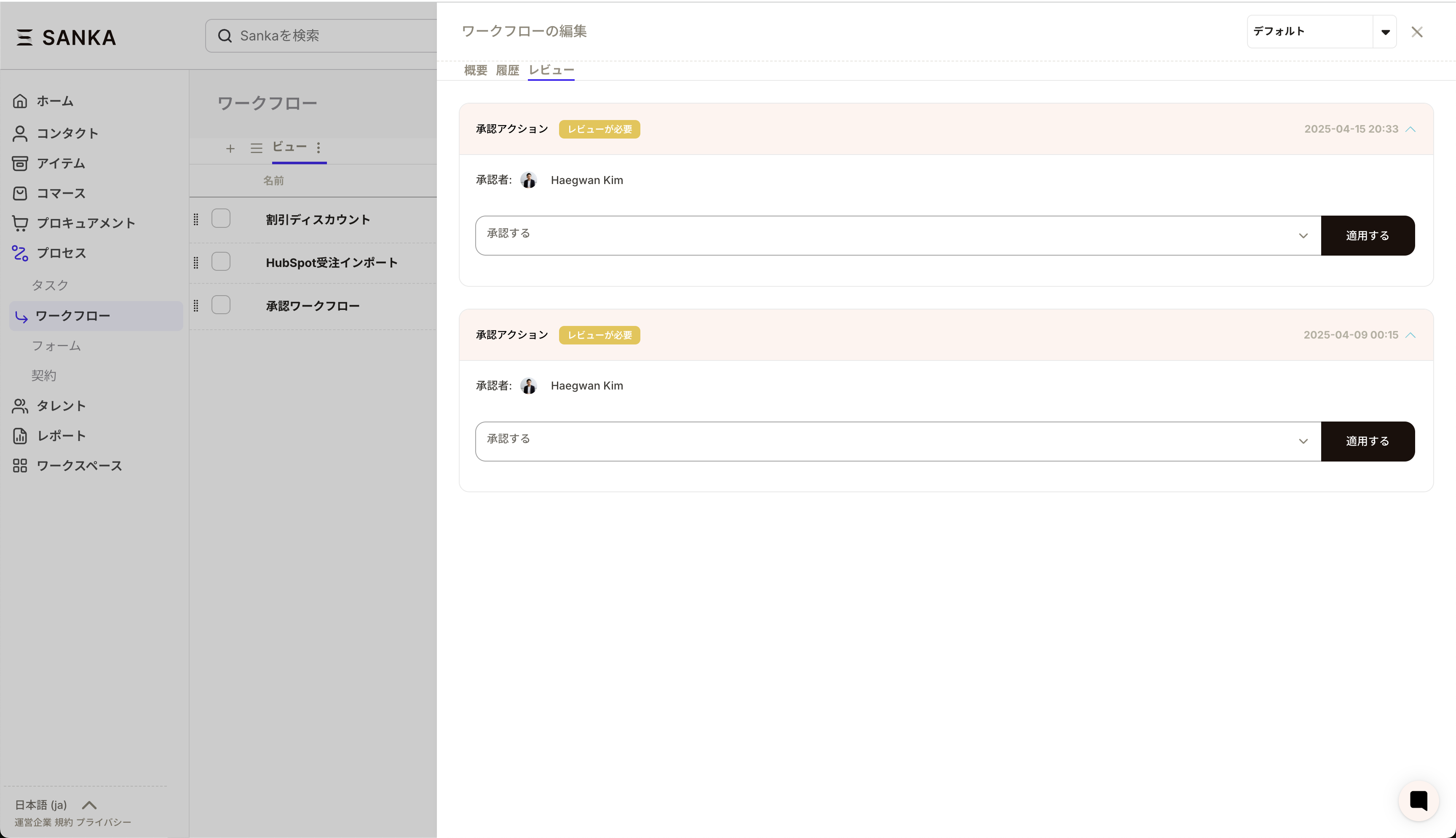 Sanka's approval actions allow you to build flexible approval flows, such as step-by-step approval by multiple approvers, conditional approval, and information collection using custom fields.