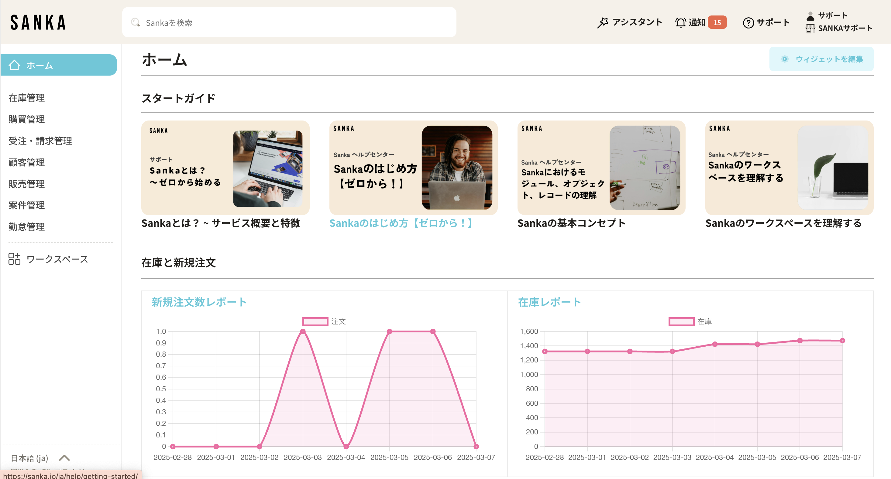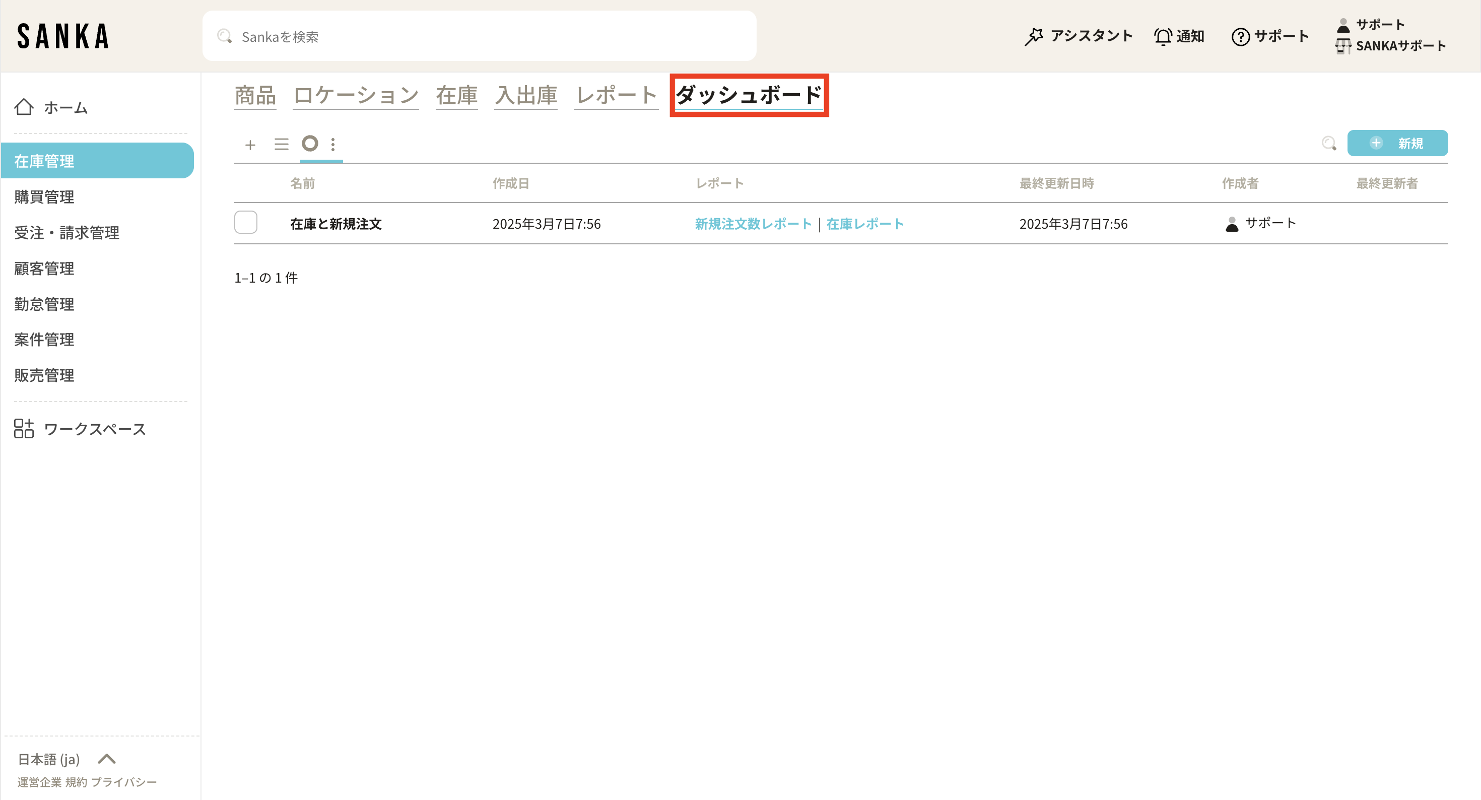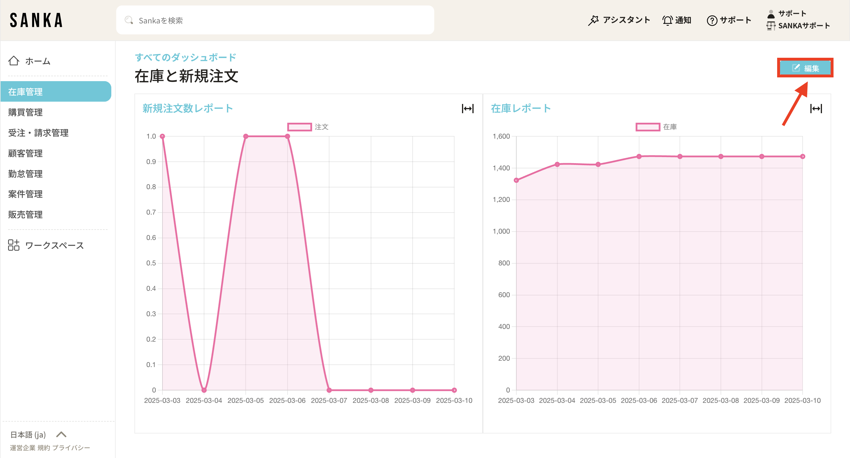 It is also possible to create a dashboard by combining the reports created with Reports and display it on the Sanka home screen.