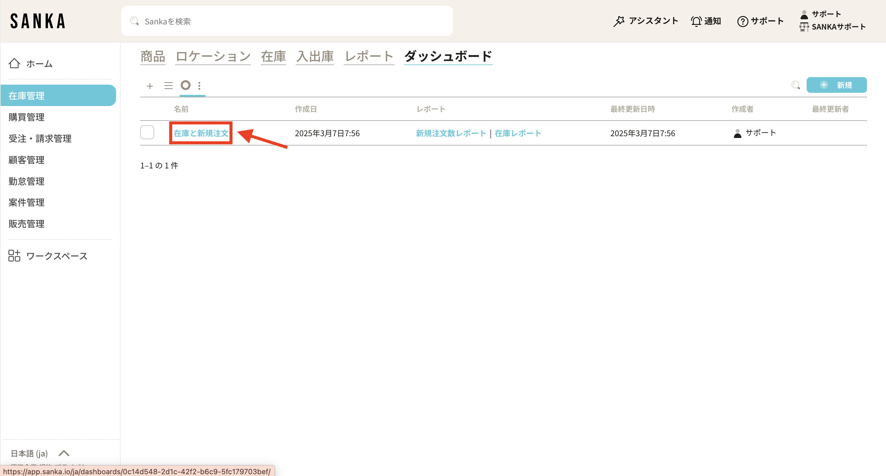 ② Select the name of the relevant dashboard record. You can also check and edit the report here.