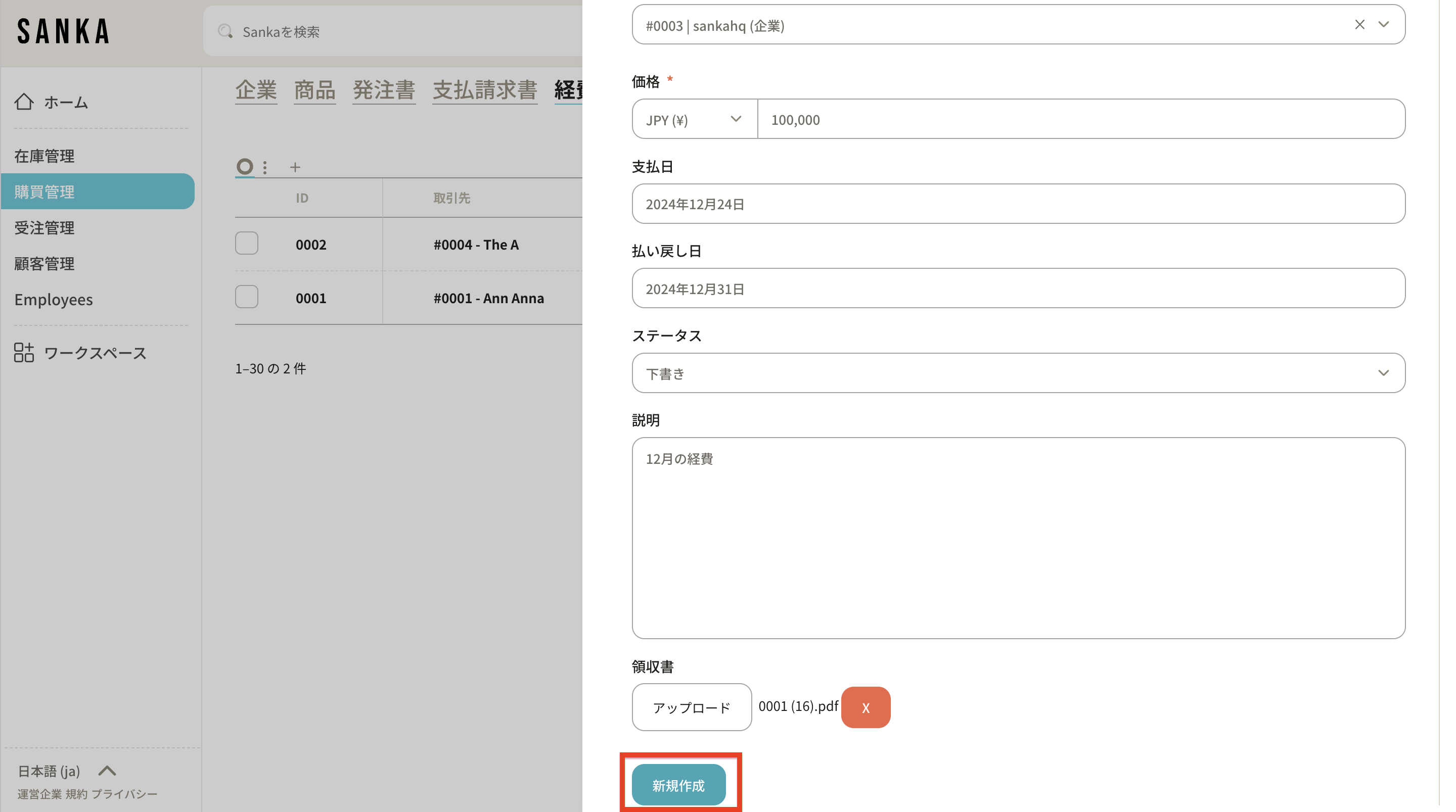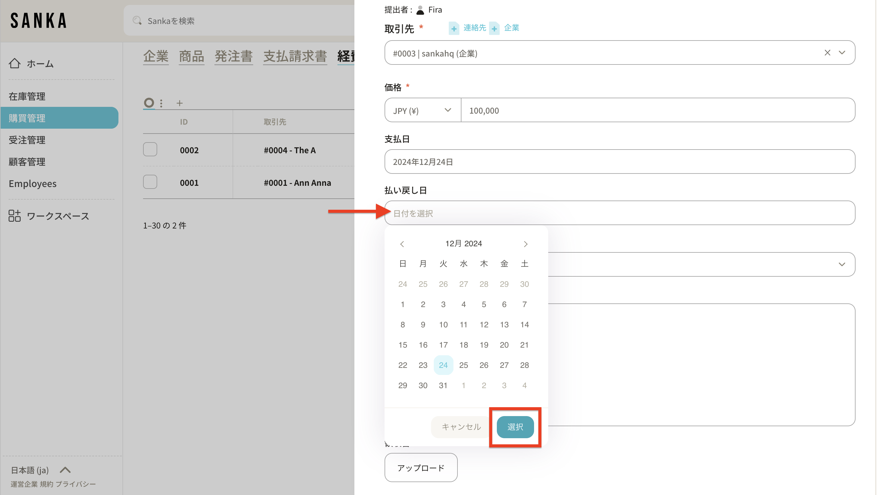2: The details page will be displayed. Enter the required information. First, select a partner from your registered contacts and companies.