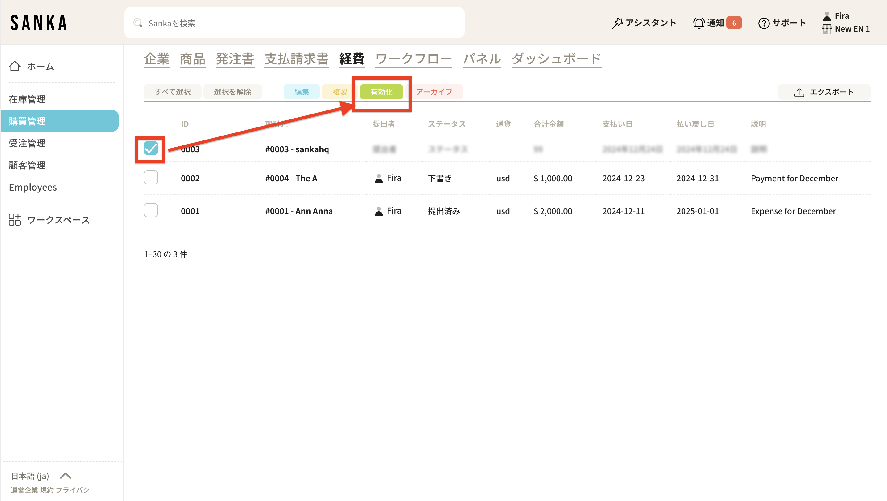 14: If you want to reinstate it, click the box for the appropriate expense and select Activate.