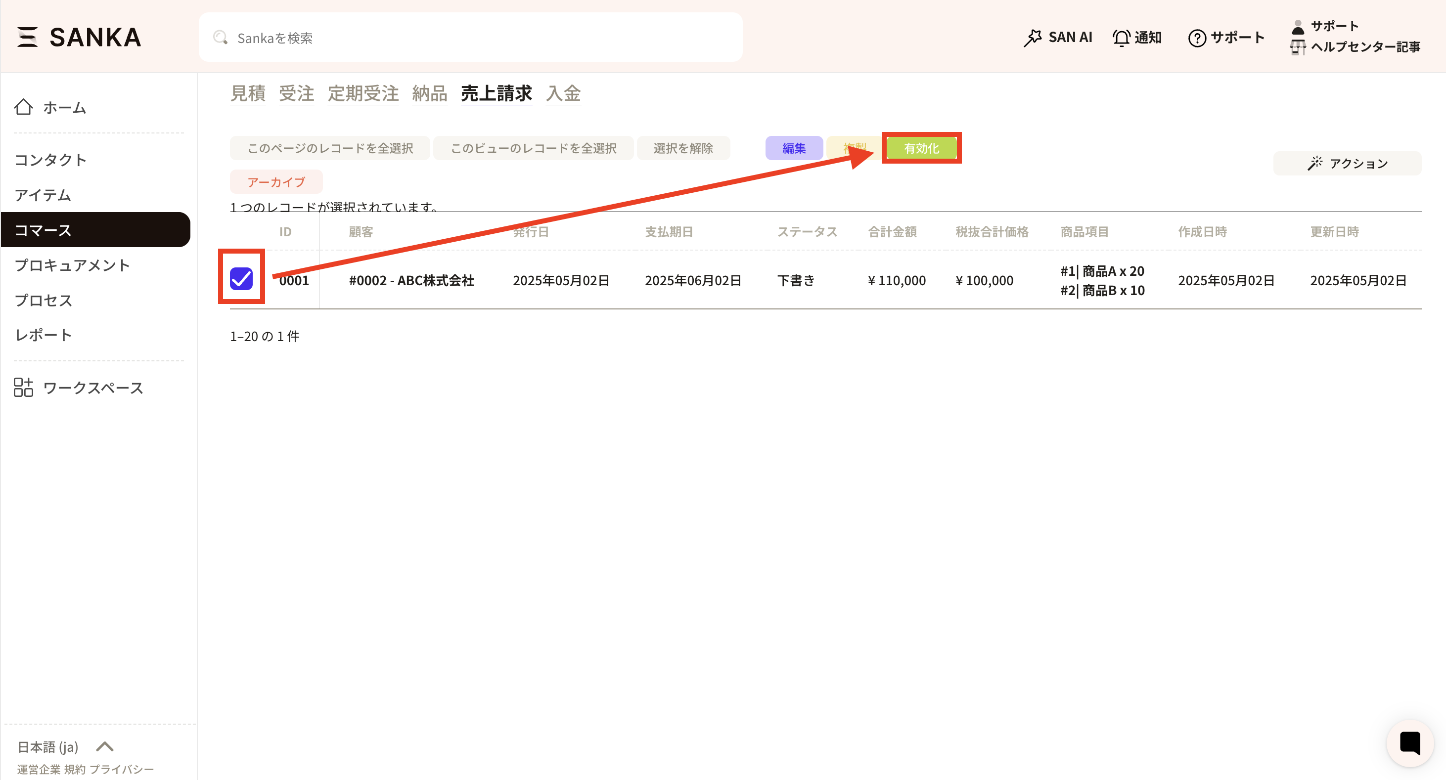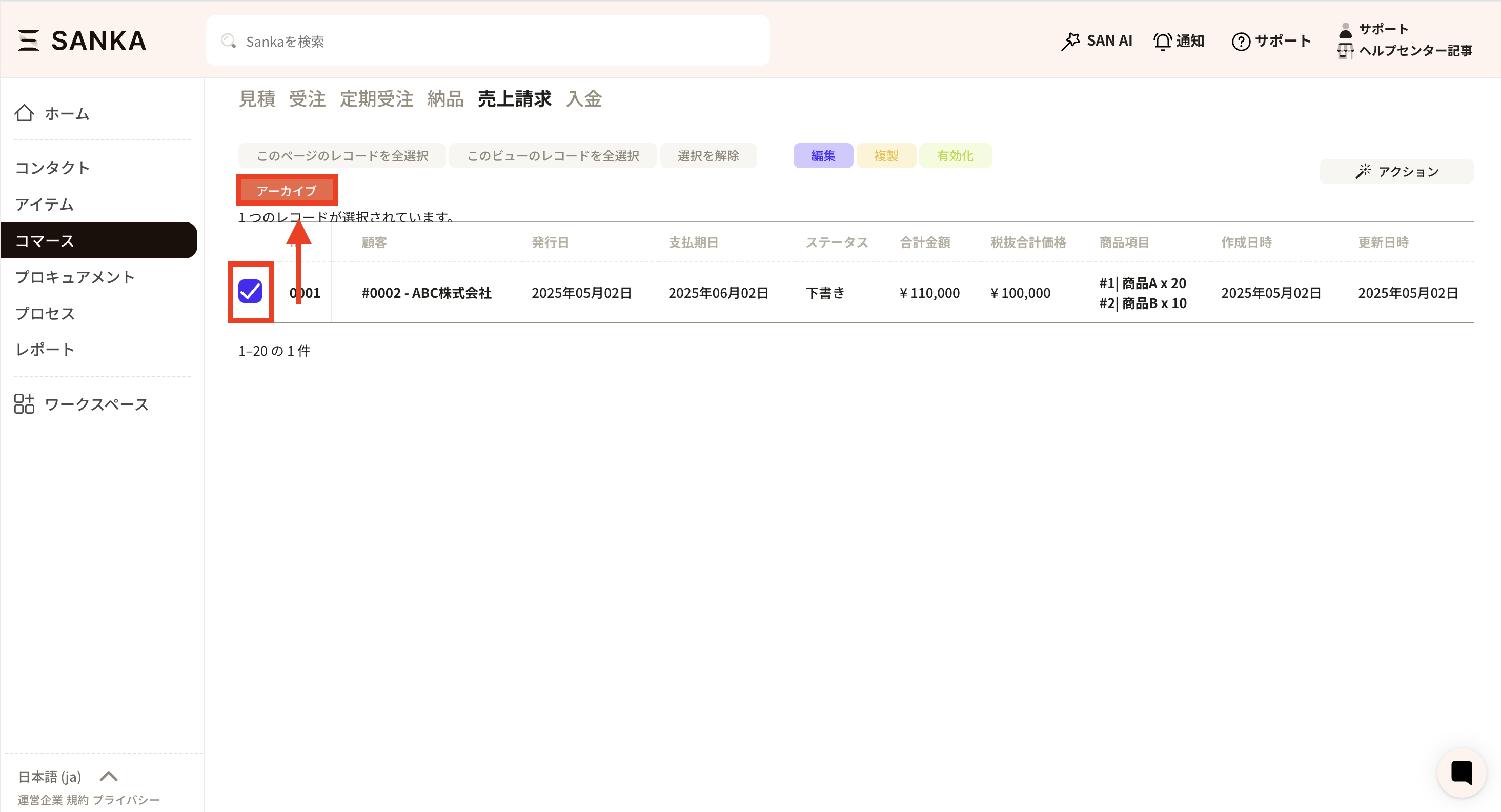 ⑤ Archived records will be displayed, so check the records you want to unarchive and press the Activate button.