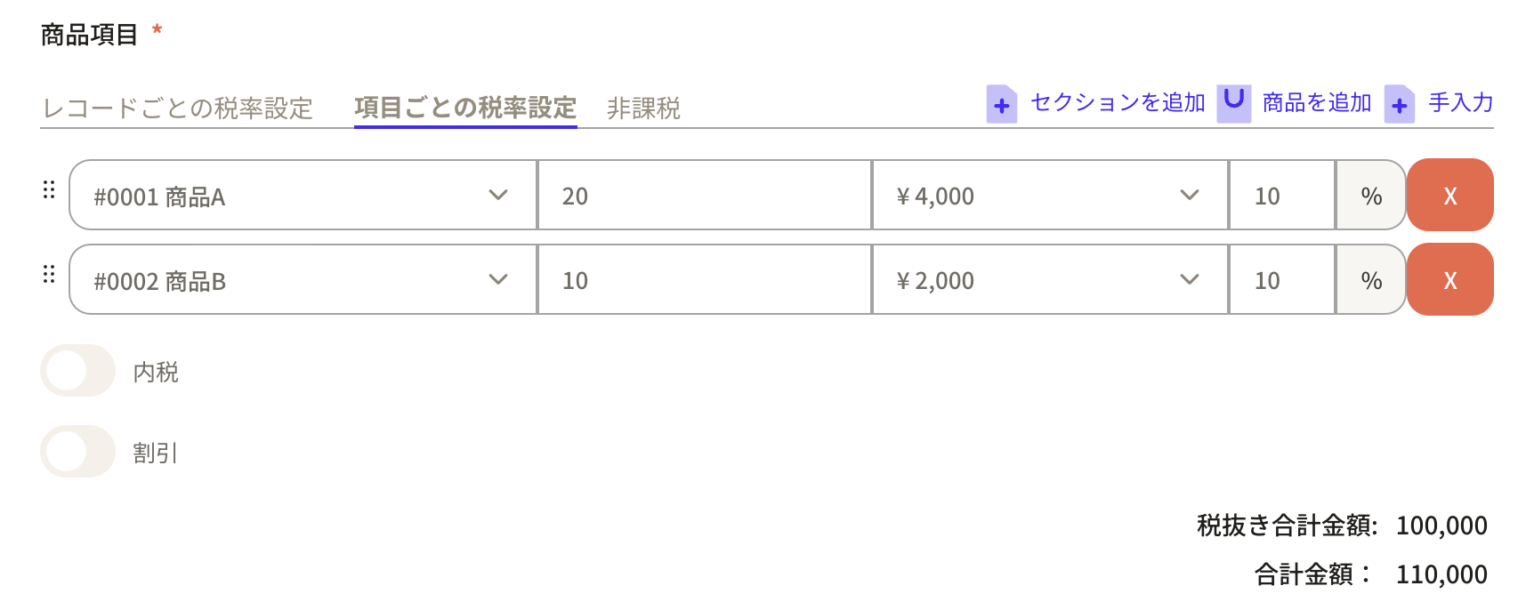 Please note that the amount at the time of product record registration will be automatically added to the unit price.