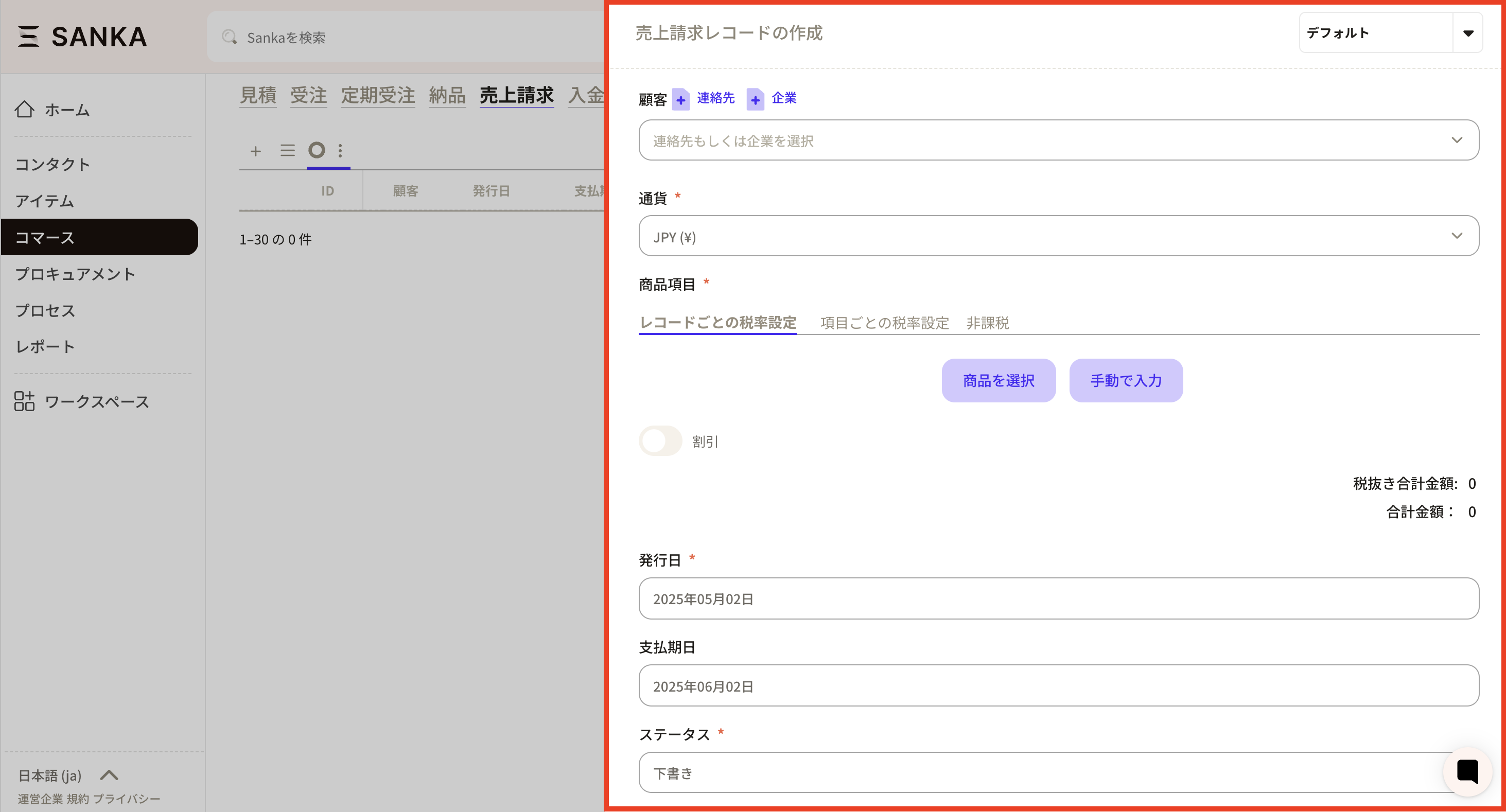 ②The "Create invoice" menu will be displayed, so enter the necessary information.