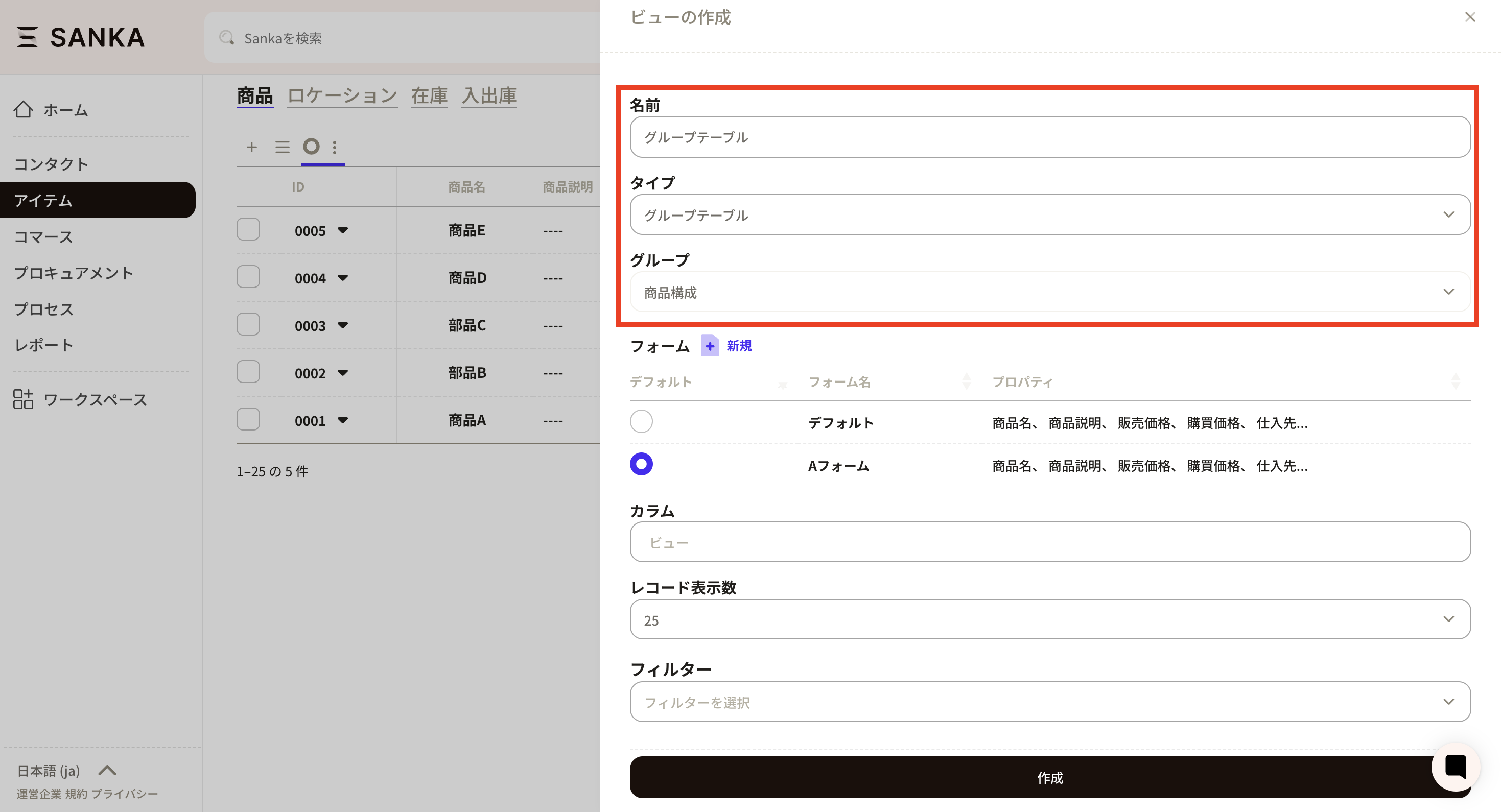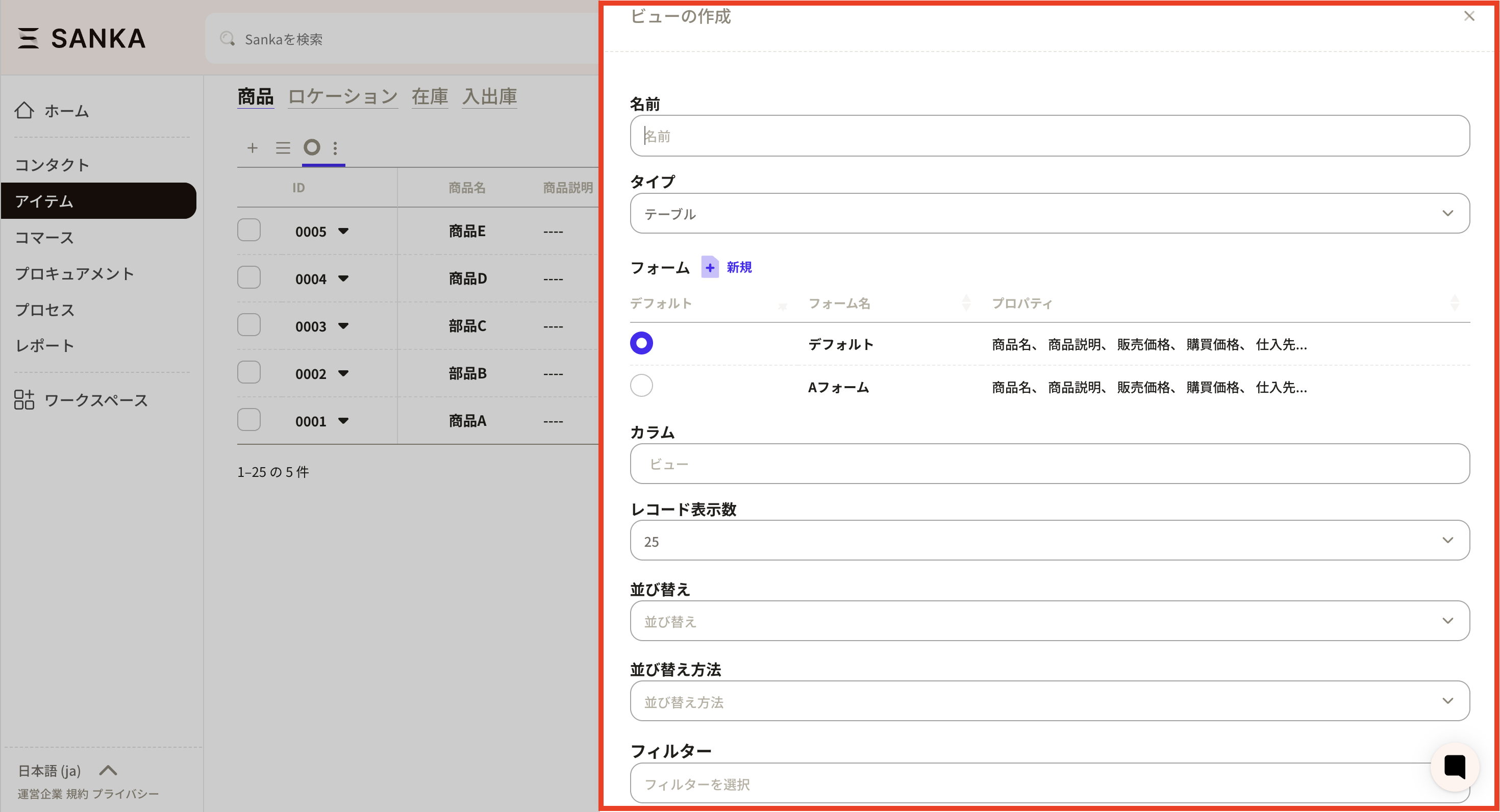 ⑥Next, reflect the created product configuration properties on the form (record creation screen). Open "New" for the product object.