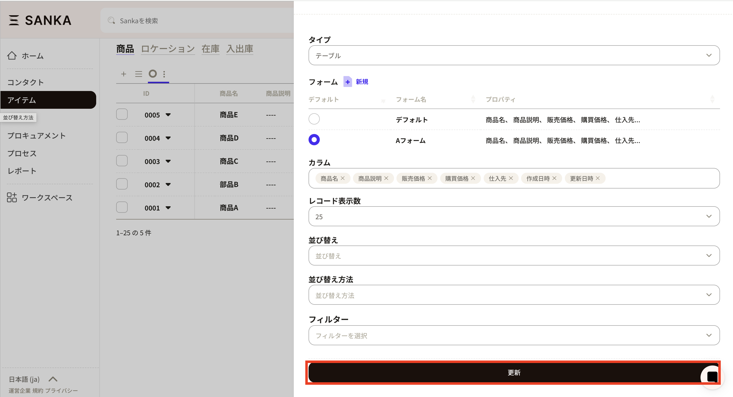 ⑯Finally, press the update button, and the form with the product configuration added will always be displayed.